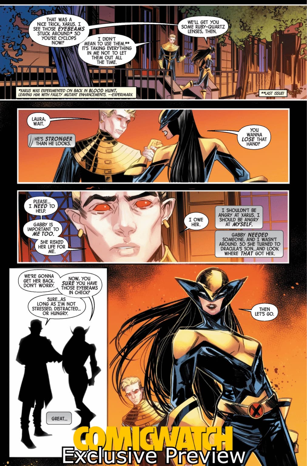 “We want to show you all different sides of Laura. There will be laughing and crying,” teased Schultz. “Laura has dealt with a lot, and when she’s met her other clones, she’s asked herself ‘Is that the person I’m supposed to be? Am I fated to be that person? Should I take my own path, or end up like Logan?’ She decides to forge her own path. This will be her solo adventure.”