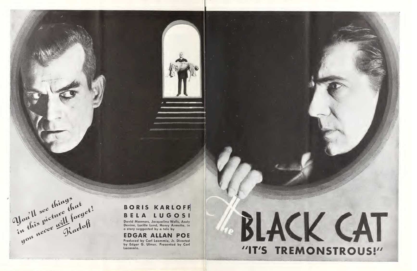Plusieurs longs métrages portent le titre de The Black Cat en prétendant s’inspirer de la nouvelle d’Edgar Allan Poe publiée en 1843 mais le plus souvent ces adaptations sont (très) libres et ne reprennent que quelques éléments du texte original…ou alors absolument pas du tout comme ce premier Black Cat sorti en 1934 (il y avait déjà eu une version du Chat Noir dans le film allemand Unheimliche Geschichten en 1932). Car si l’affiche de la production Universal mentionne Edgar Allen Poe’s The Black Cat, le fameux chat noir n’a en fait qu’une présence limitée dans une histoire qui n’a rien à voir avec celle du célèbre écrivain (ce sera également le cas dans l’autre Black Cat du studio, tourné en 1942 avec également Bela Lugosi au générique).