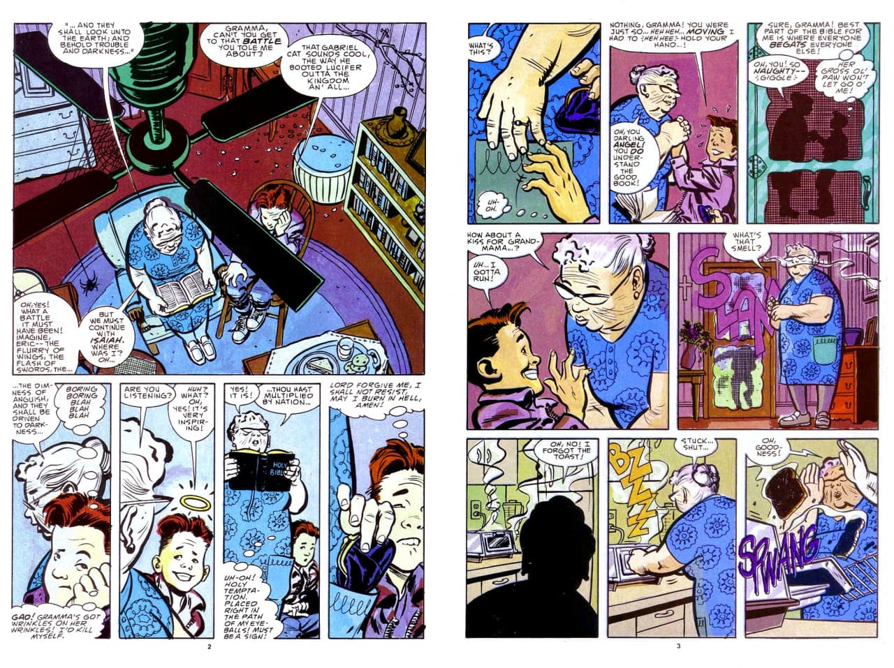 Dans Marvel Comics Presents #131, Sandy Plunkett signe une histoire d’Ant-Man. Ce n’est pas le membre fondateur Henry Pym, mais son successeur, Scott Lang. Le récit s’ouvre sur la fuite d’un homme, dont on apprendra plus tard qu’il s’agit d’un voleur ayant dévalisé une usine Stark. Lang le poursuit et arrive dans une maison où le voleur a planqué son butin et où il ne trouve qu’un enfant (la maman ayant pris sa soirée). L’intrigue inverse le thème classique de la « home invasion », puisque c’est le héros qui entre dans le foyer. Mais l’inversion est à double détente, puisqu’il s’agit aussi d’un détournement du pitch de Maman, j’ai raté l’avion, Scott Lang devant faire face à un sale garnement qui ne veut pas être laissé seul et qui s’en prend au héros miniature.