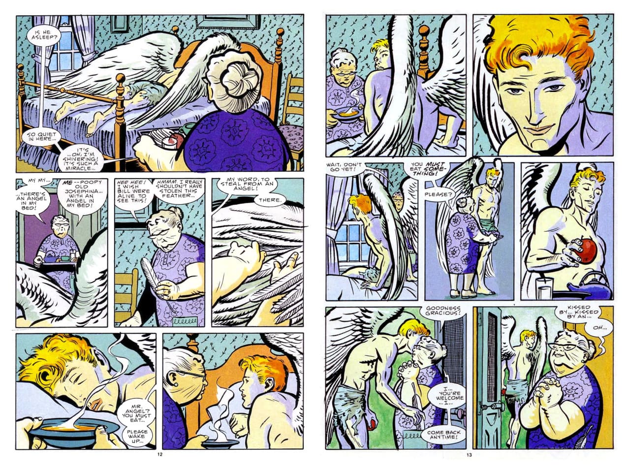 C’est drôle, rapide, plein de péripéties très visuelles (d’autant que sur la table trône un menu de réveillon, où les bombardements de purée prennent une autre dimension). Là encore, on voit l’influence de Frazetta dans le dessin de Plunkett (avec un encrage évoquant un peu Wrightson aussi, excusez du peu !), et ça fonctionne très bien. Et à la fin, le sale gosse est bien puni, et je partage le sentiment de satisfaction du héros.