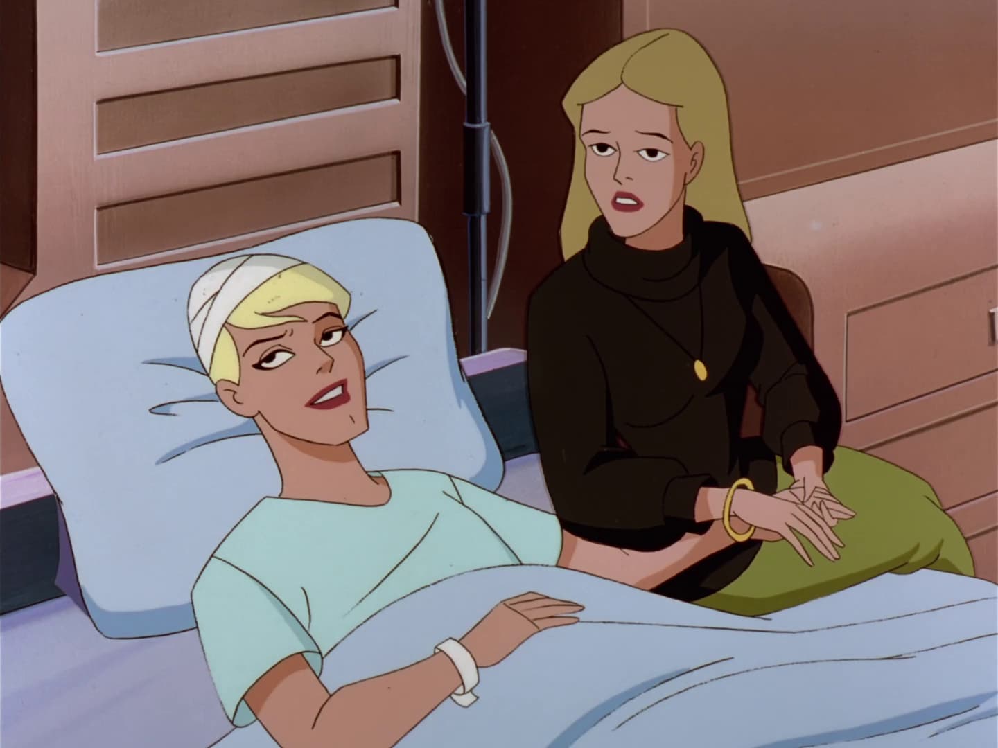 C’est survolé. Dans un épisode Maggie est hospitalisée. Turpin est là mais également Toby (enfin j’imagine que c’est elle vu qu’elle n’est pas nommée). Rien n’est explicite mais par les gestes et les regards tu comprends qu’elles sont ensemble. Je sais pas pour Justice League mais de manière générale j’ai l’impression que l’animation américaine à aborder ce genre de relation de manière plus frontale dans le même temps qu’il y a eu un changement dans la perception de celle-ci à la télévision.