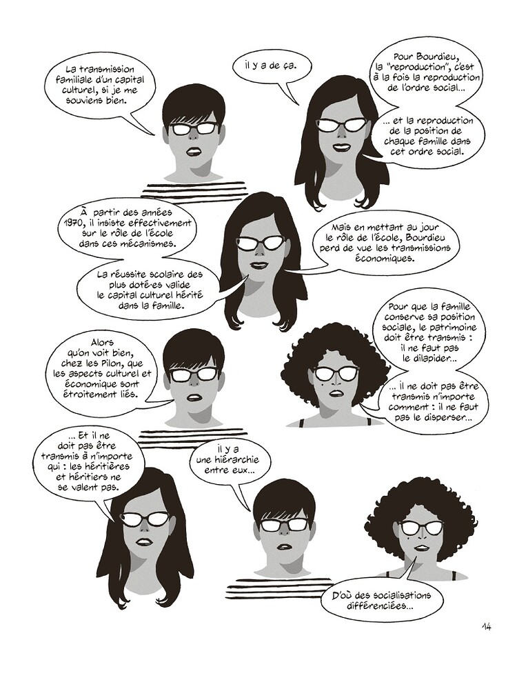 Ces deux dernières années, j’ai travaillé sur l’adaptation en BD de l’essai de Céline Bessière et Sibylle Gollac, “Le Genre du capital”. Paru en 2019 aux éditions La Découverte, l’ouvrage analyse l’inégalité de richesse entre les hommes et les femmes, malgré des droits formellement égaux.