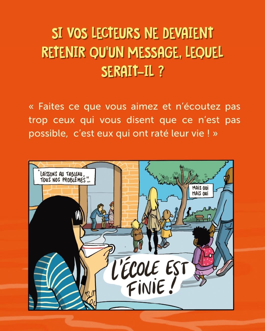 L’Ecole est finie d’Evemarie est un récit autobiographique plein d’humour et d’autodérision qui aborde des sujets importants dans lesquels nous pouvons tous nous reconnaître.