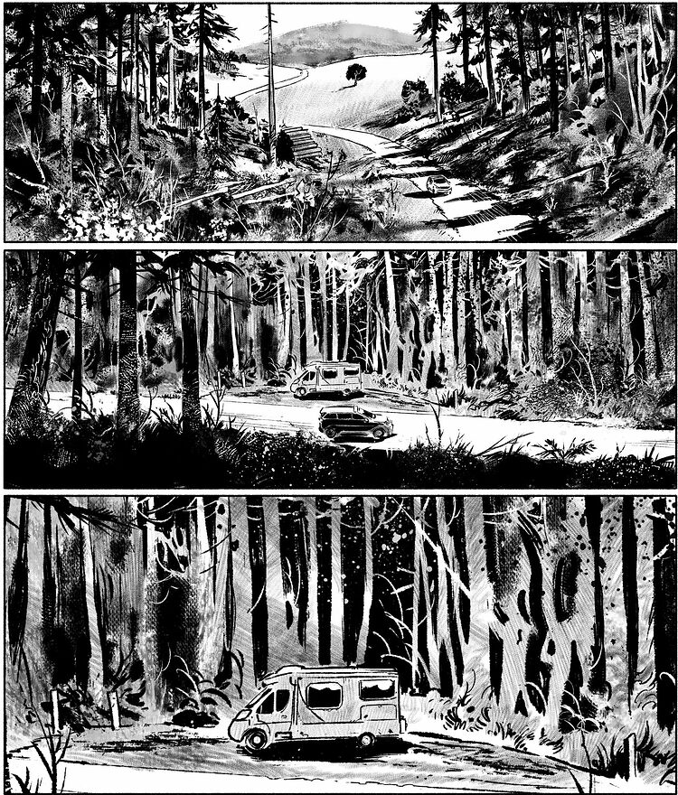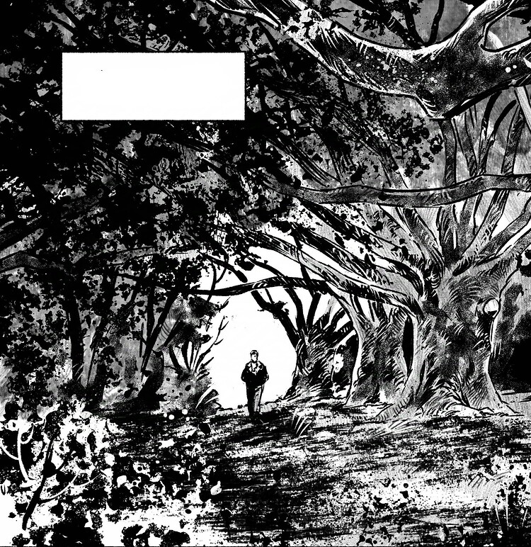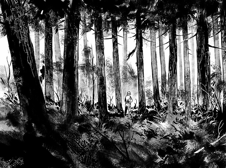 L’ENFANT DEMON (Komics Initiative) De l’importance de la forêt dans l’atmosphère du récit. Oppressant, omniprésent, l’espace boisé est plus qu’un lieu, c’est un personnage à part entière. Un personnage muet que l’on ne décrypte pas facilement, mais qui possède son propre langage. La forêt était là avant nous, elle nous survivra. Elle génère et abrite ses propres créatures…