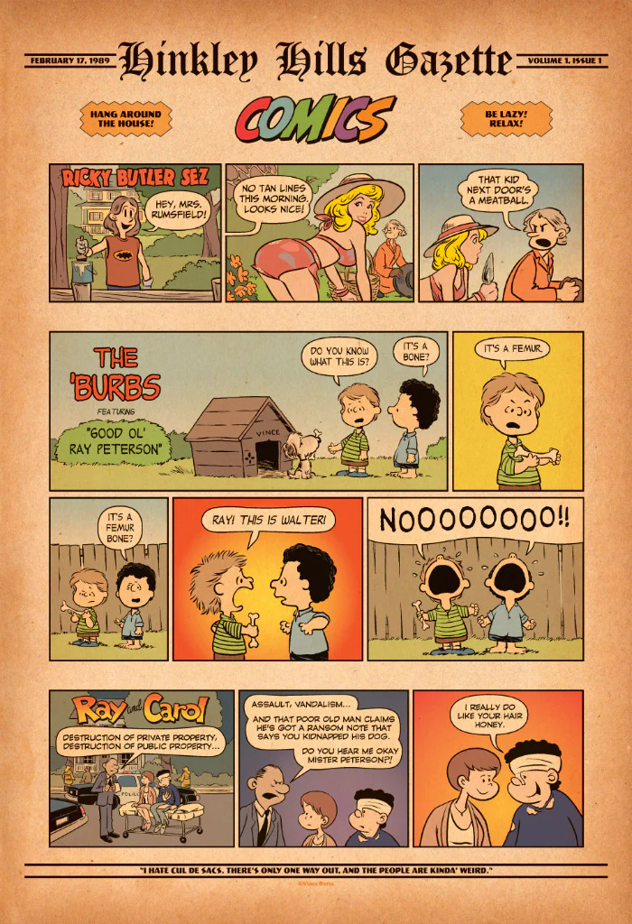 L’intrigue des Banlieusards ne quitte jamais ce petit bout de rue, un microcosme qui concentre toutes les mesquineries qui peuvent exister entre voisins. L’exposition présente rapidement et efficacement les acteurs de l’histoire et permet de cerner leurs traits de caractères, de Art, le voisin lourdingue et envahissant de Ray, au vétéran savoureusement interprété par Bruce Dern en passant par la jeune tête-à-claques (Cory Feldman, l’un des ados stars des années 80) pour qui ce petit théâtre (exagéré) de la vie est un vrai spectacle qu’il ne raterait pour rien au monde.