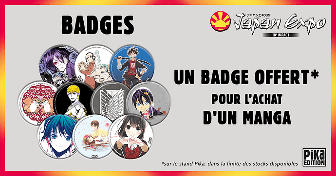 Un badge offert pour l’achat d’un manga ou d’un album
