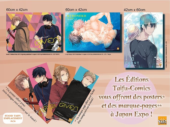 Un poster offert pour 3 mangas yaoi achetés et un marque-page pour 1 manga yaoi acheté