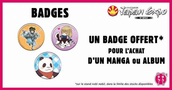 Un badge offert pour un manga acheté