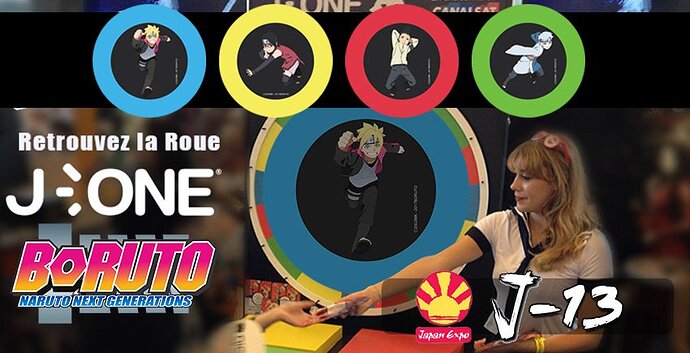 Vous pourrez essayer de tourner la roue Boruto pour gagner des cadeaux en partenariat avec J-One : des lampions, tote bags, posters…