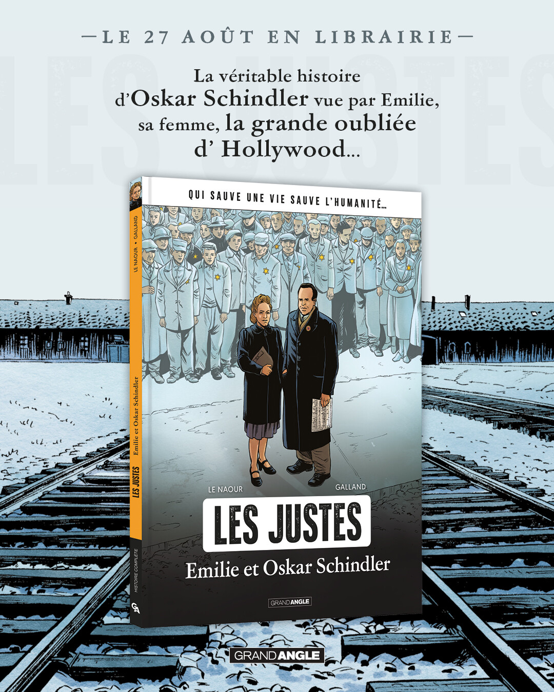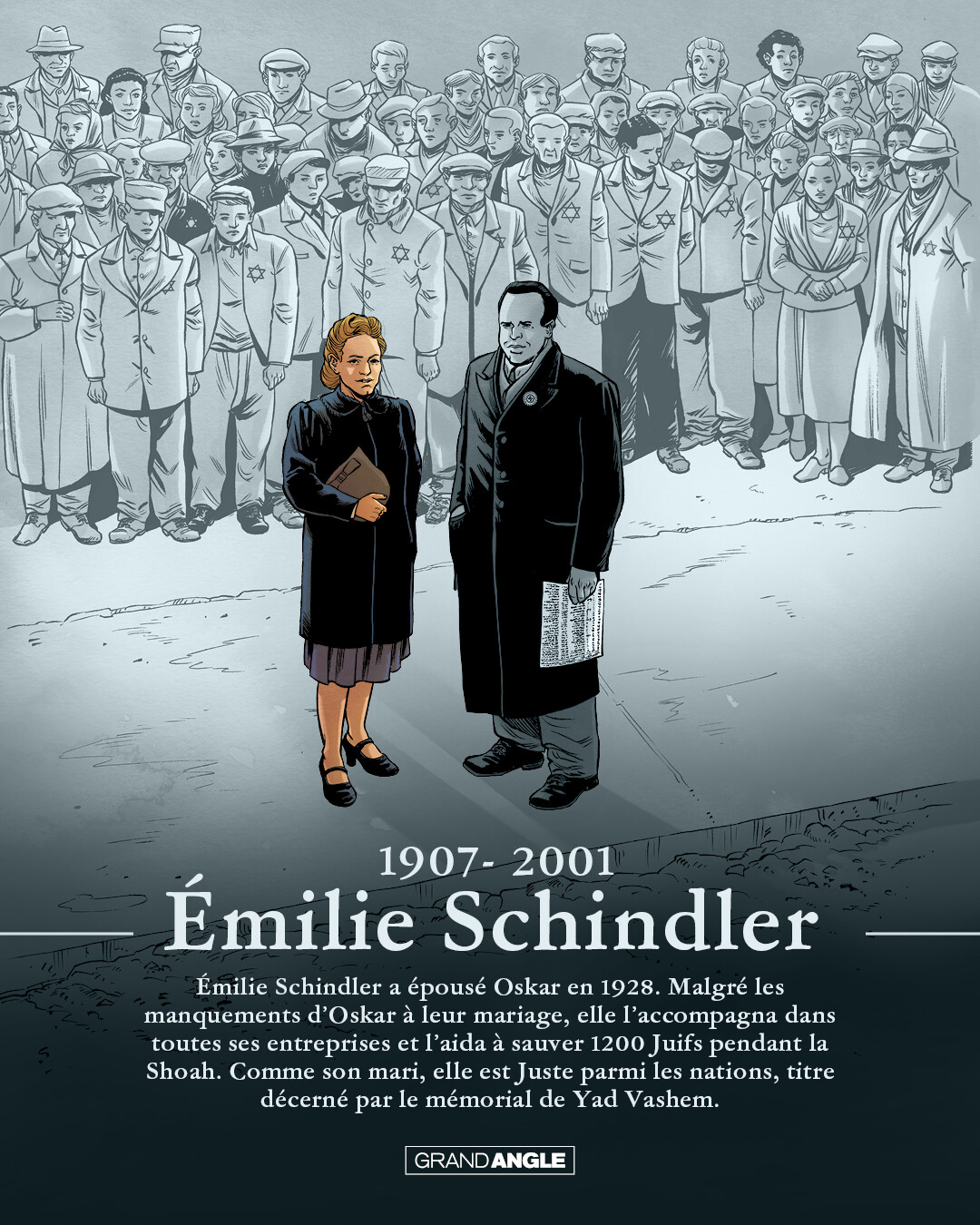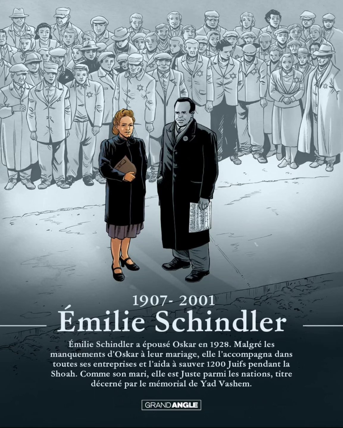 Émilie et Oskar Schindler, une histoire complète par Jean-Yves Le Naour au scénario et Christelle Galland aux dessins et à la couleur, aux éditions Grand Angle. Sortie prévue le 27 août en librairie.