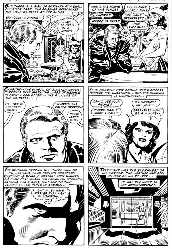 En 1976, le scénariste Marv Wolfman propose l’adaptation comics de la célèbre série anglaise « Le Prisonnier » à l’éditeur Marvel Comics. Sous la supervision de **Steve Englehart **et Gil Kane (sur les conseils de Stan Lee), c’est Jack Kirby qui se retrouve à la tête du projet sur « le combat pour la liberté d’un homme entêté face à de subtiles mais puissants oppresseurs » ([size=85]Cit. Jack Kirby[/size]) qui semble en parfaite adéquation avec les créations du King. L’artiste s’était d’ailleurs approprié le concept dès 1968 dans « Fantastic Four #84-87 »; la première famille Marvel se retrouvait prise au piège par Fatalis dans une fausse petite bourgade Latvérienne où les paysans hébétés ressemblaient à s’y méprendre aux villageois.