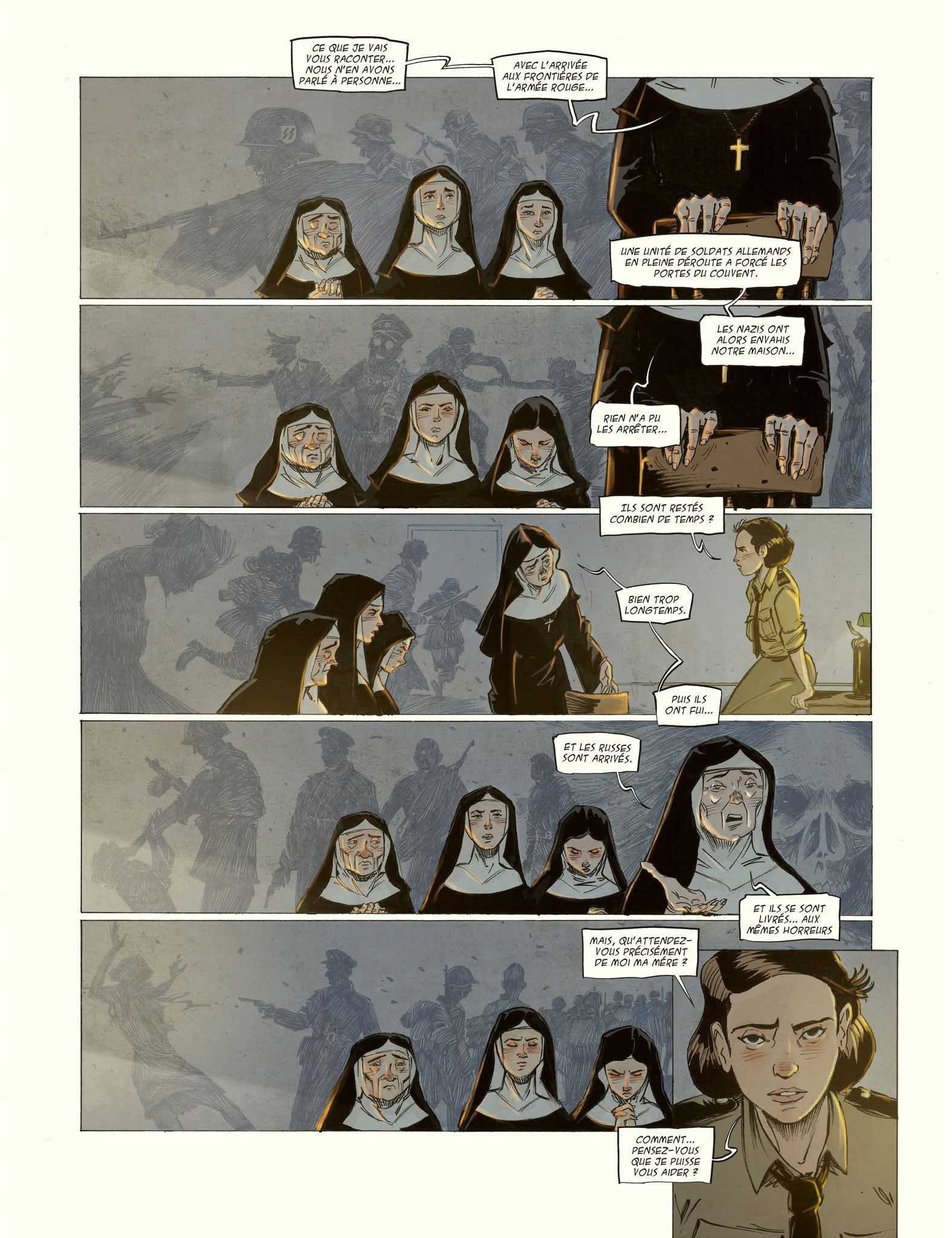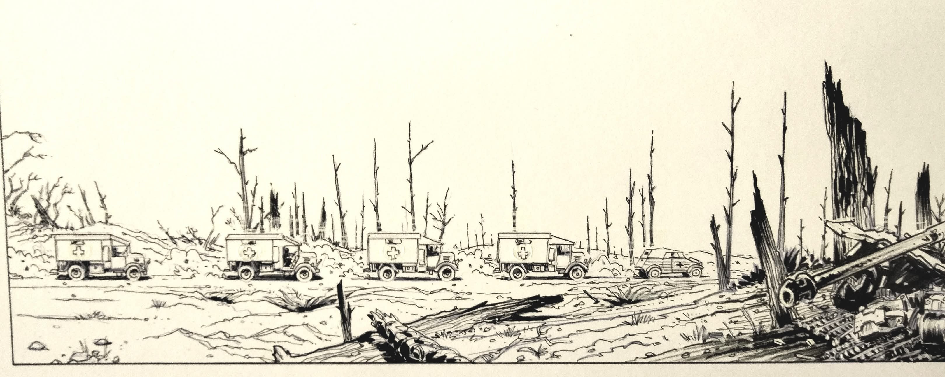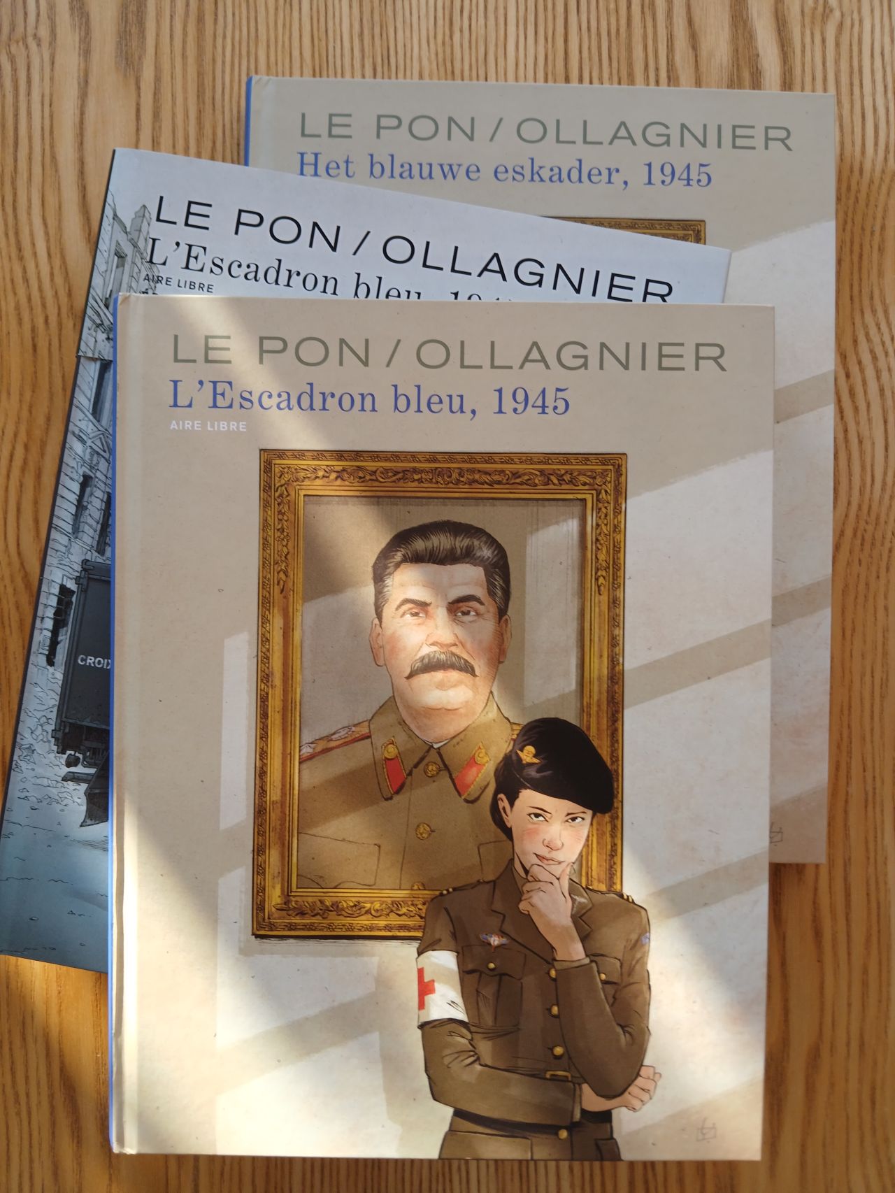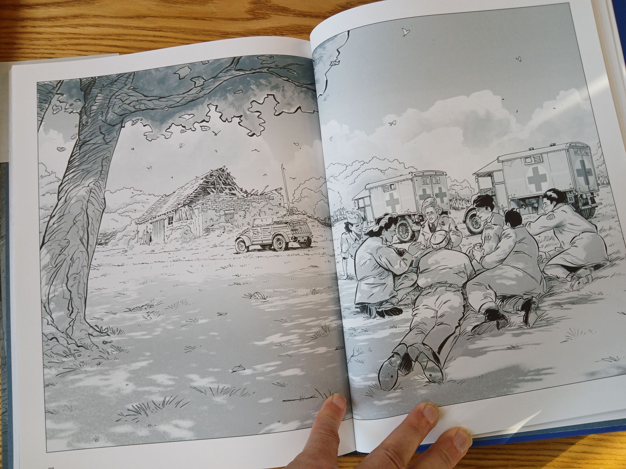 Cette semaine, ultimes vérifications sur le livre, Sortie prévue le 16 janvier. Presque 3 ans de travail sur un livre de 152 pages. Qui retrace le parcours de femmes exceptionnelles. Elles étaient conductrices, infirmière en 1945, elles ont sauvé des vies en parcourant toute l’Europe dans leurs ambulances. Une épopée à travers l’Allemagne et la Pologne jusqu’en URSS. L’Escadron Bleu, 1945, un scénario de Virginie Ollagnier, adapté du livre de Philippe Maynial : « Madeleine Pauliac, L’insoumise ».