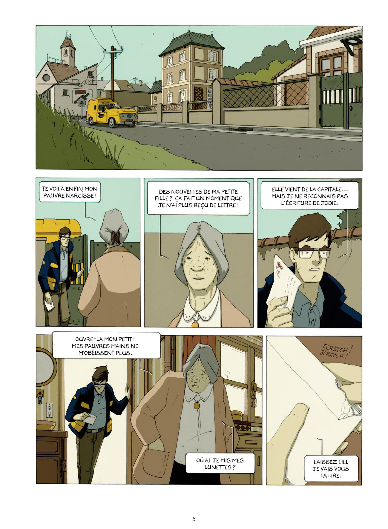 Une jeune fille, Jodie, vient de perdre la mémoire lors d’un accident de voiture. Son médecin lui suggère de retourner dans son village natal auprès de sa grand-mère, avec qui elle entretenait depuis 5 ans une correspondance régulière, afin de retrouver ses souvenirs. Malgré la mort inopinée de sa grand-mère, Jodie retourne au village. Narcisse, le facteur du village, l’accueille dès son arrivée à la gare. Ils semblent être amis depuis toujours, il propose son aide pour lui servir de guide dans sa quête aux souvenirs. Son parcours l’amène à mener l’enquête sur la mort de ses parents… Elle va de surprise en surprise !