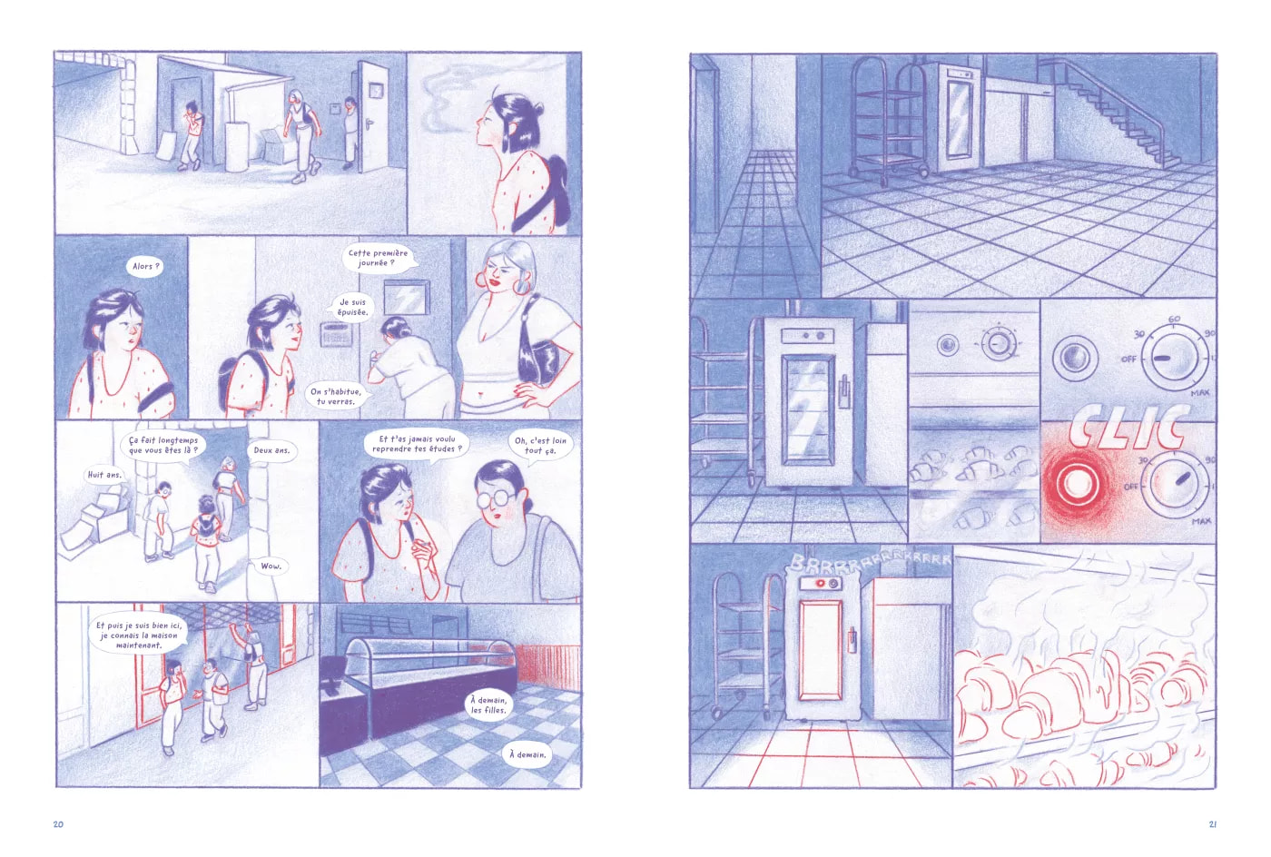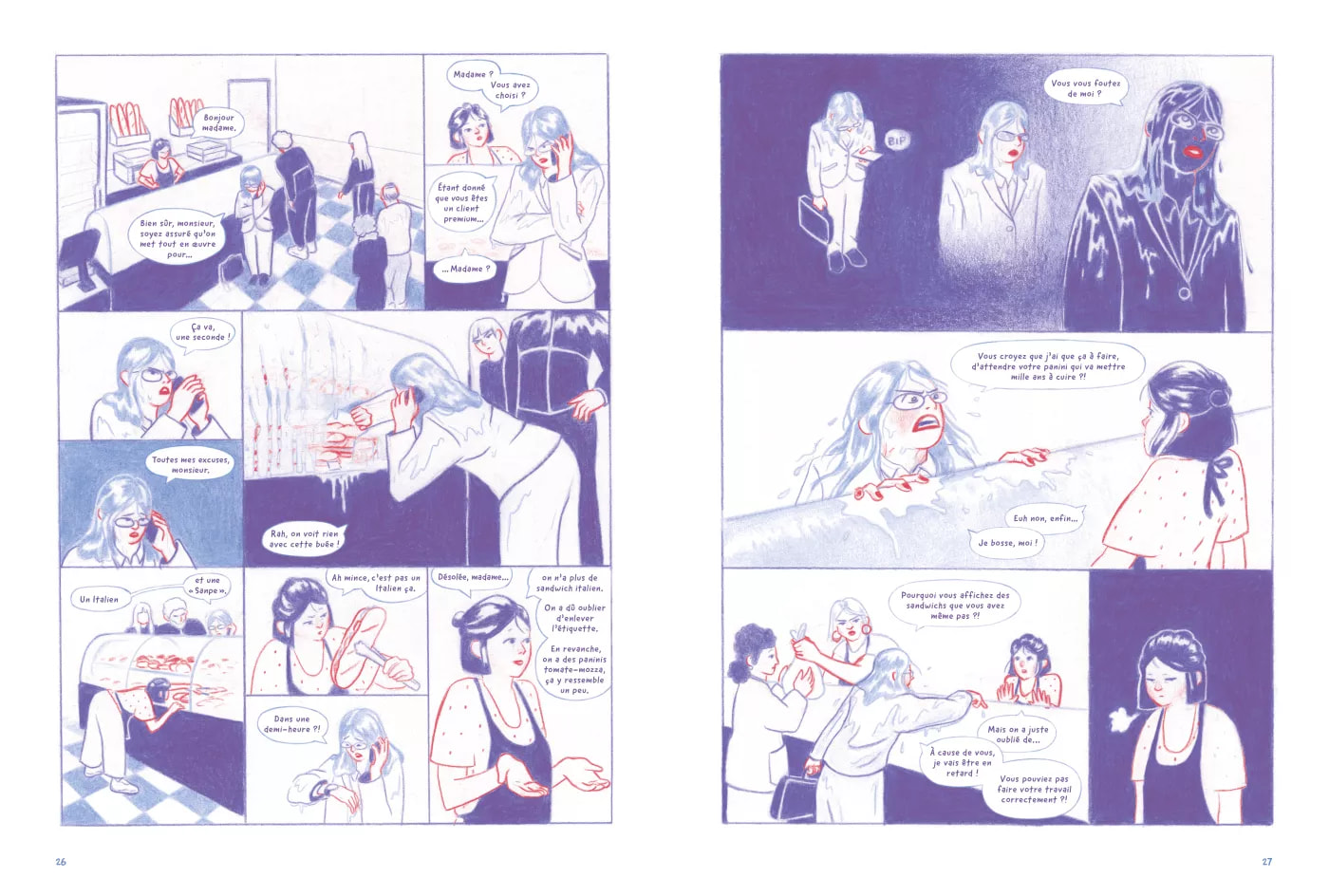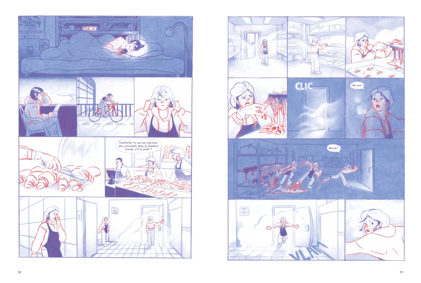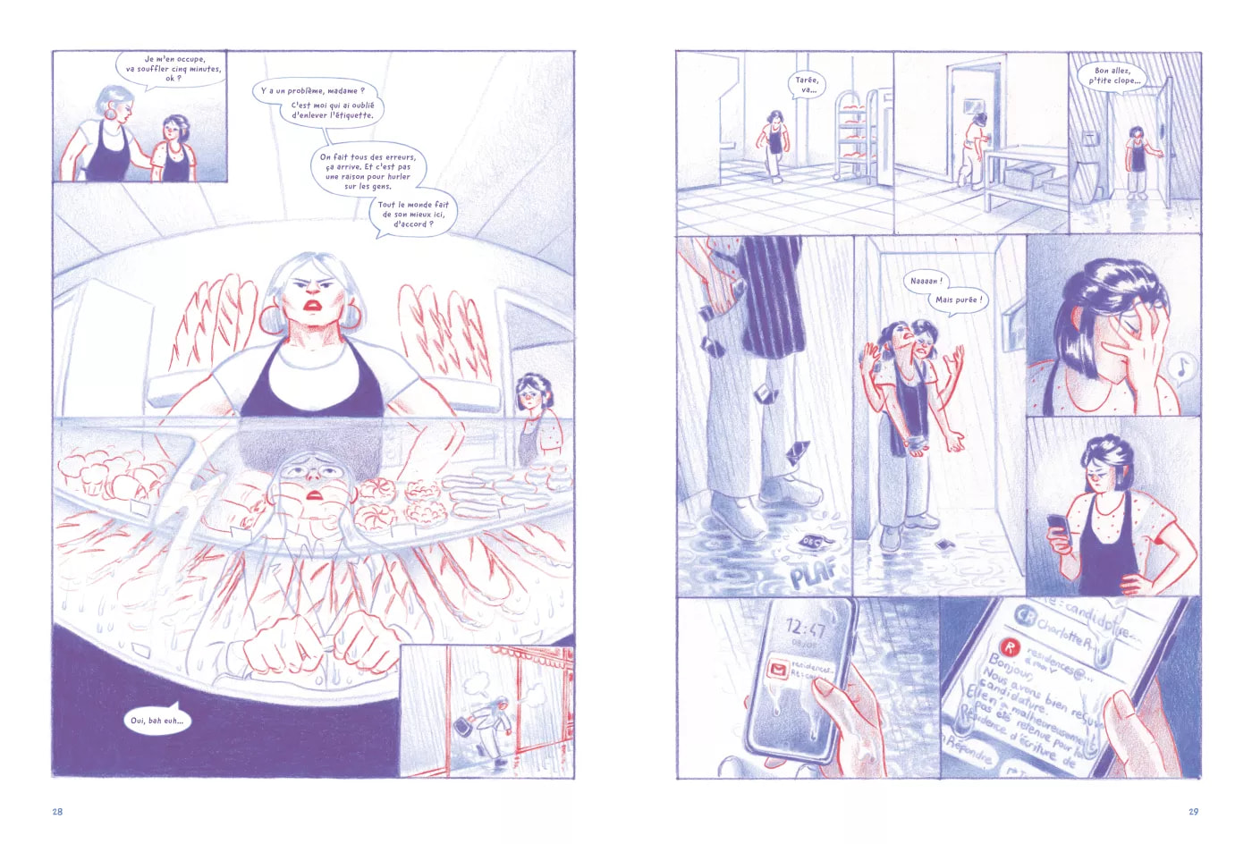 Charlotte rêve de cinéma mais personne ne veut de ses scénarios. Elle intègre alors les rangs d’une boulangerie-sandwicherie de gare. Un job alimentaire, du temporaire, le temps de… Mais ce travail, avec ses cadences infernales, ses règles d’hygiène strictes et sa manageuse tyrannique, la happe pour ne plus la lâcher. Comme ces phénomènes étranges, - ou hallucinations ? - qu’elle est la seule à voir : un liquide noir qui dégouline de partout, du pain, du plafond, du pétrin …