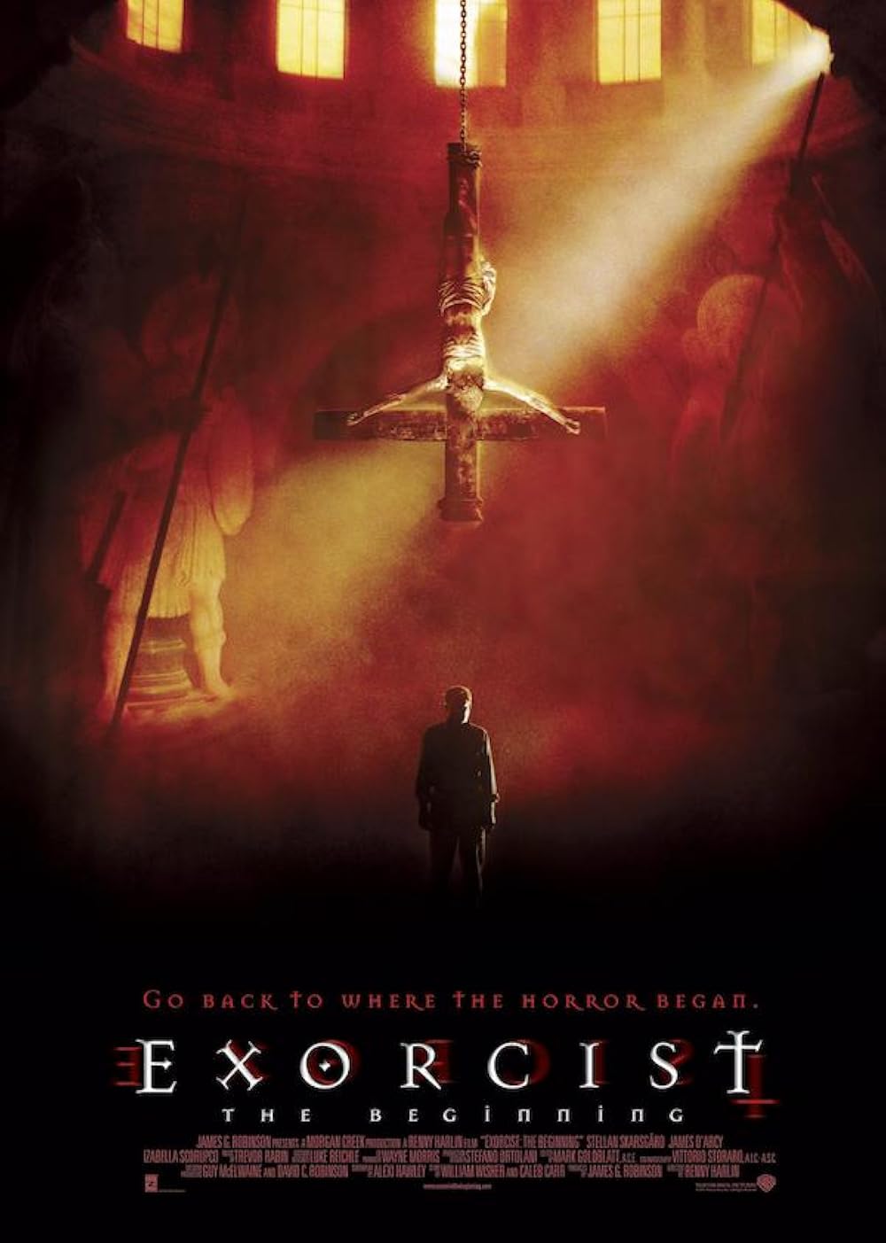 Regarder les deux longs métrages à la suite (car suite à l’échec du Harlin, Schrader a pu sortir son montage l’année suivante sous le titre Dominion - Prequel to the Exorcist) est une drôle d’expérience car c’est pratiquement la même histoire (avec tout de même des péripéties différentes) dans les mêmes décors avec quasiment les mêmes acteurs (certains rôles ont du être recastés) mais avec deux styles complètement opposés. Aussi bien dans sa manière de traiter le suspense que dans ses mouvements de caméra, Renny Harlin n’est pas un modèle de subtilité. Son Exorciste est plus sanglant, un peu plus racoleur aussi (voir le traitement de la doctoresse survivante des camps de concentration), jouant aussi la facilité avec un personnage féminin possédée et maquillée comme Regan avant un exorcisme final ridicule. Stellan Skarsgard joue ici un père Merrin plus proche d’Indiana Jones et le clin d’oeil de l’ultime plan est un peu trop appuyé.