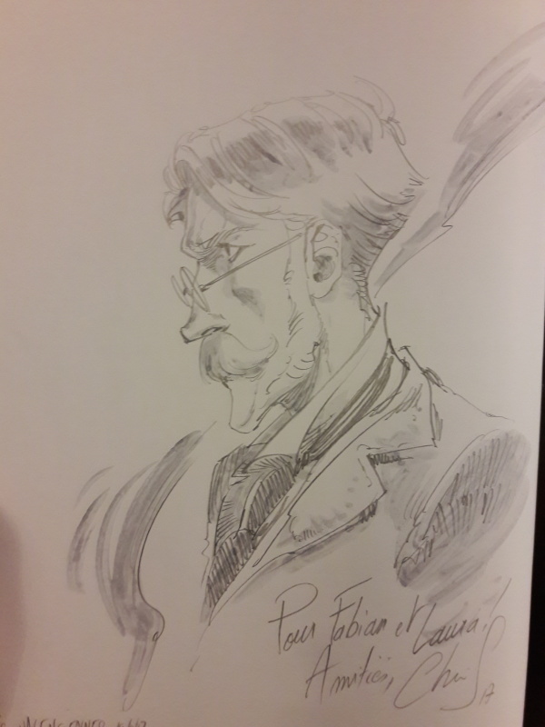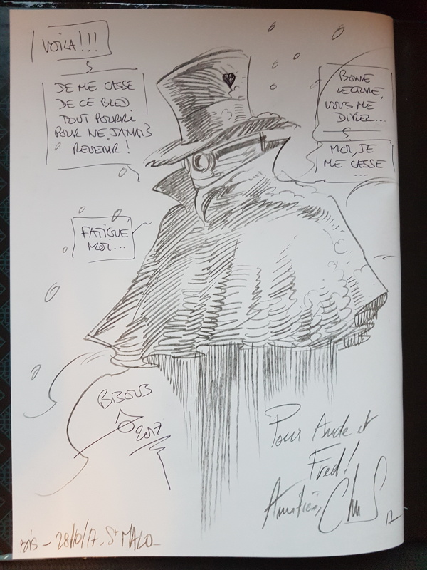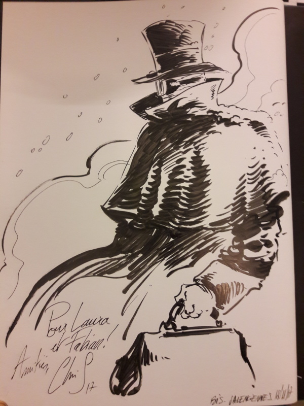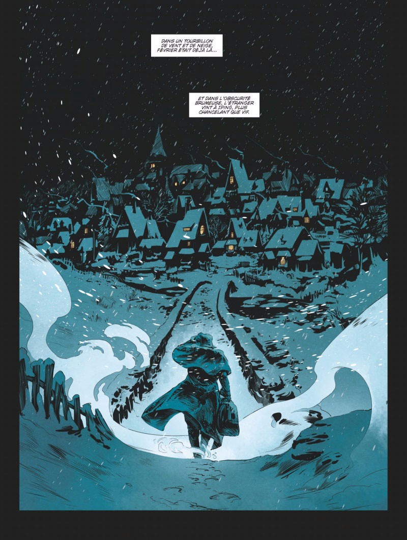 C’est plutôt bien troussé, et très énergiquement dessiné par Chris Regnault. Les pages encadrées de noir du début de l’album sont du meilleur effet, avec des ambiances colorées qui ne sont pas sans rappeler une veine à la Lauffray. Son dessin parfois semi-réaliste évoque aussi l’approche d’un David Étien. Son encrage, parfois un peu gras, donne une variété aux personnages et aux objets et un côté nerveux aux planches.