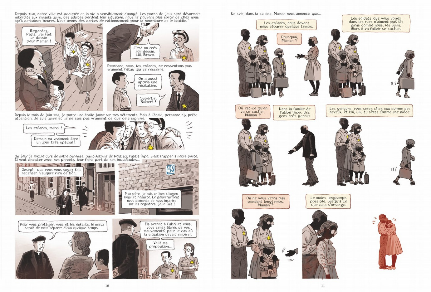 Cet album très documenté apporte un éclairage historique puissant sur le combat insensé pour la survie, dans plusieurs camps de concentration, d’une mère et de ses trois enfants. Aujourd’hui à 93 ans, Lili Keller-Rosenberg continue de porter haut la parole en mémoire des disparus. Boris Golzio s’empare de l’histoire vraie de cette enfant survivante de la Shoah pour livrer un album digne et bouleversant, d’un réalisme saisissant. Il est postfacé par deux historiens spécialisés : André Rosenberg (le petit frère de Lili) sur le sujet des enfants dans la Shoah, et Bernhard Strebel, le grand historien allemand du système concentrationnaire nazi. Une œuvre poignante et nécessaire, cosignée par une femme qui est, toujours, restée debout.