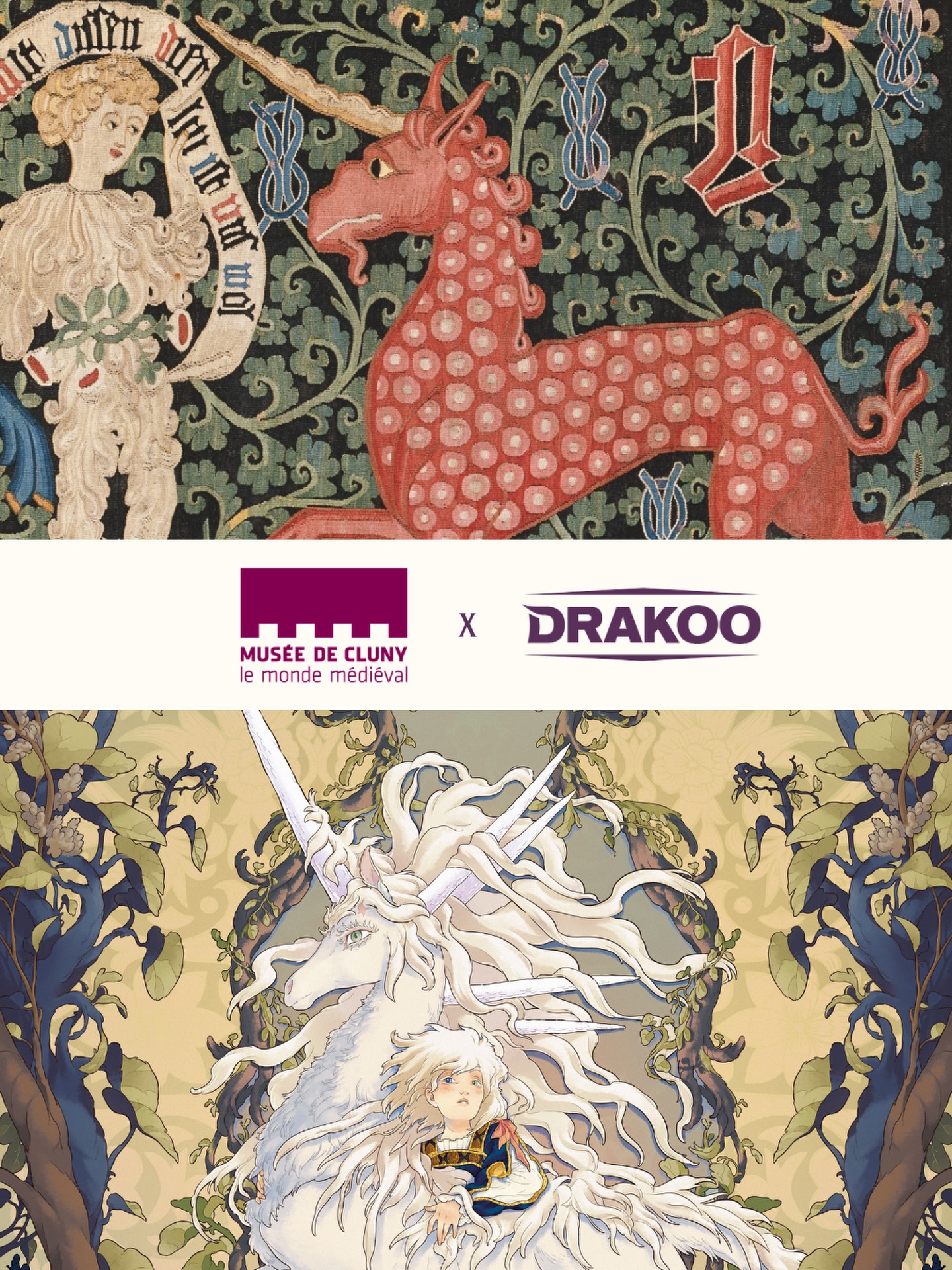 Drakoo et le musée de Cluny - musée national du Moyen Âge, s’associent pour mettre en lumière les créatures puissantes et sauvages que ce sont les licornes, héritées de l’imaginaire médiéval