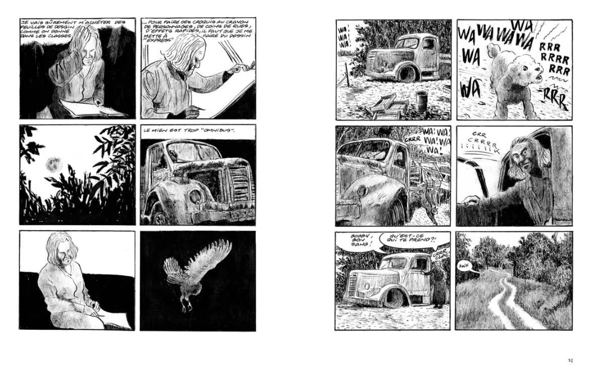 Et cette fois-ci, c’est le personnage de Marcel Bascoulard, dessinateur virtuose de Bourges, clochard magnifique et femme inventée, que l’auteur explore à l’encre la plus noire, mais avec une infinie humanité.