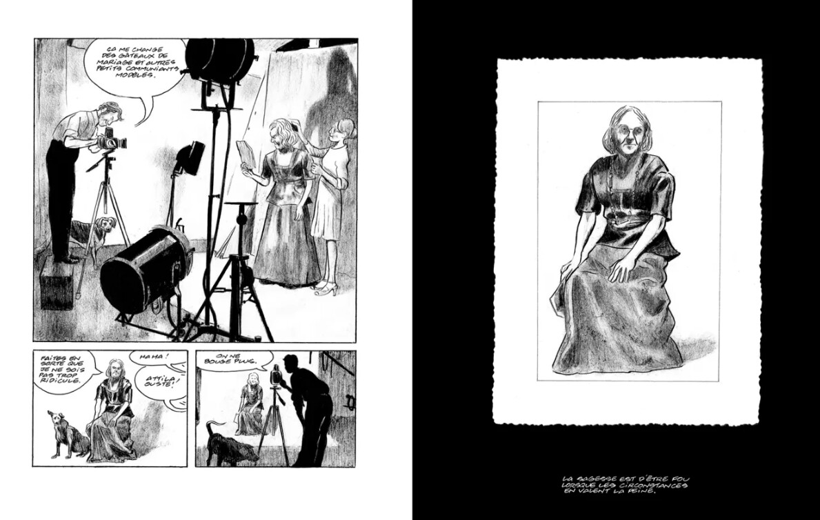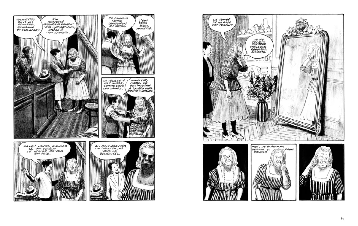 Artiste à fond, pas graveur, mais photo, et dessin. Tout commence quand Bascoulard à une expo à Bourges qui fait un carton alors que lui ne le voulait pas faisant monter sa popularité. Après on le suit lui, errant discutant avec des gens, dessinant, se faisant prendre en photo… Pour le coup l’artiste et le clochard travesti sont un ensemble, l’un va avec l’autre, sans se dépareiller, et on parle aussi de sa mère.