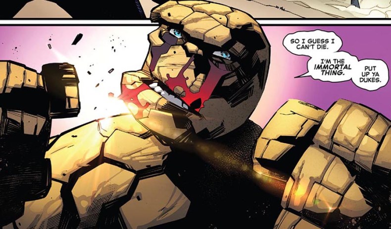 Le genre de scénariste qui serait capable de privilégier les FF (il ne cache pas son « fanboyisme » envers Galactus et Fatalis, les deux big bad du quatuor), soit l’autre série phare du Kirby des 60’s avec Thor (lors de scènes avec Magneto, il a trouvé moyen de faire référence au run du Kirby 70’s sur Cap).