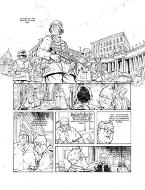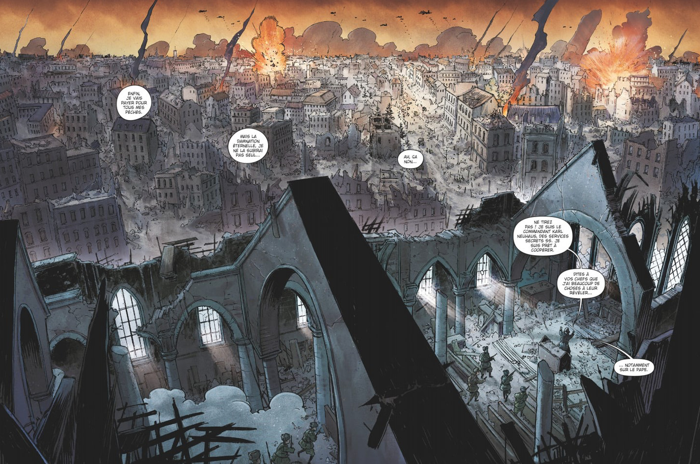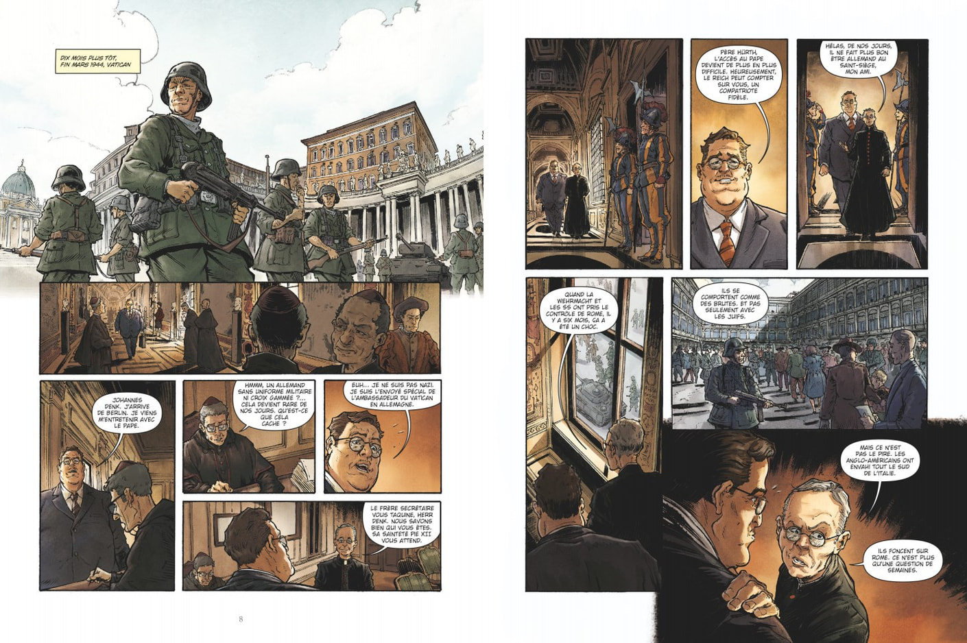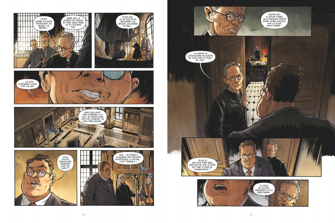 Basé sur des faits réels et des sources historiques rares issues des archives allemandes et russes (Neuhaus a été capturé par l’Armée rouge à la fin de la guerre), le nouveau diptyque du journaliste Jean-Christophe Brisard nous plonge au cœur des intrigues politiques mêlant l’Allemagne nazie et le Vatican. Aux côtés de Michael Malatini et de son dessin percutant, l’auteur nous offre un thriller historique passionnant, entre fiction, espionnage et drame religieux, qui interroge le rôle de l’Église durant la Seconde Guerre mondiale.
