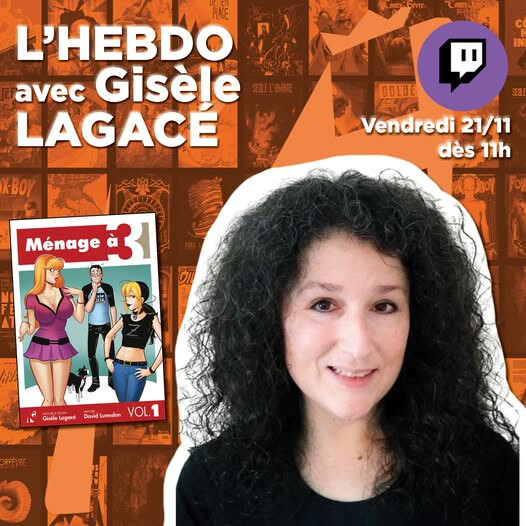 Ce vendredi, l’Hebdo accueille la sympathique et talentueuse Gisèle Lagacé, que certains d’entre vous ont pu rencontrer à Quai des Bulles ! L’autrice va revenir sur sa carrière et sur sa série Ménage à 3
