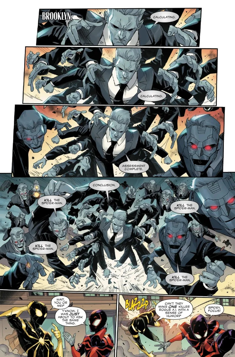 PART TWO SPIDER-MAN is back in Brooklyn - only to find himself right in the crosshairs of DEADPOOL…BOTH Deadpools! Wade Wilson has gone too far this time…and messed with the WRONG Spider-Man. How far will Wade go to collect on this contract, and who is pulling the strings behind this job?! Whoever it is, it can’t be good for Deadpool OR Miles Morales!
