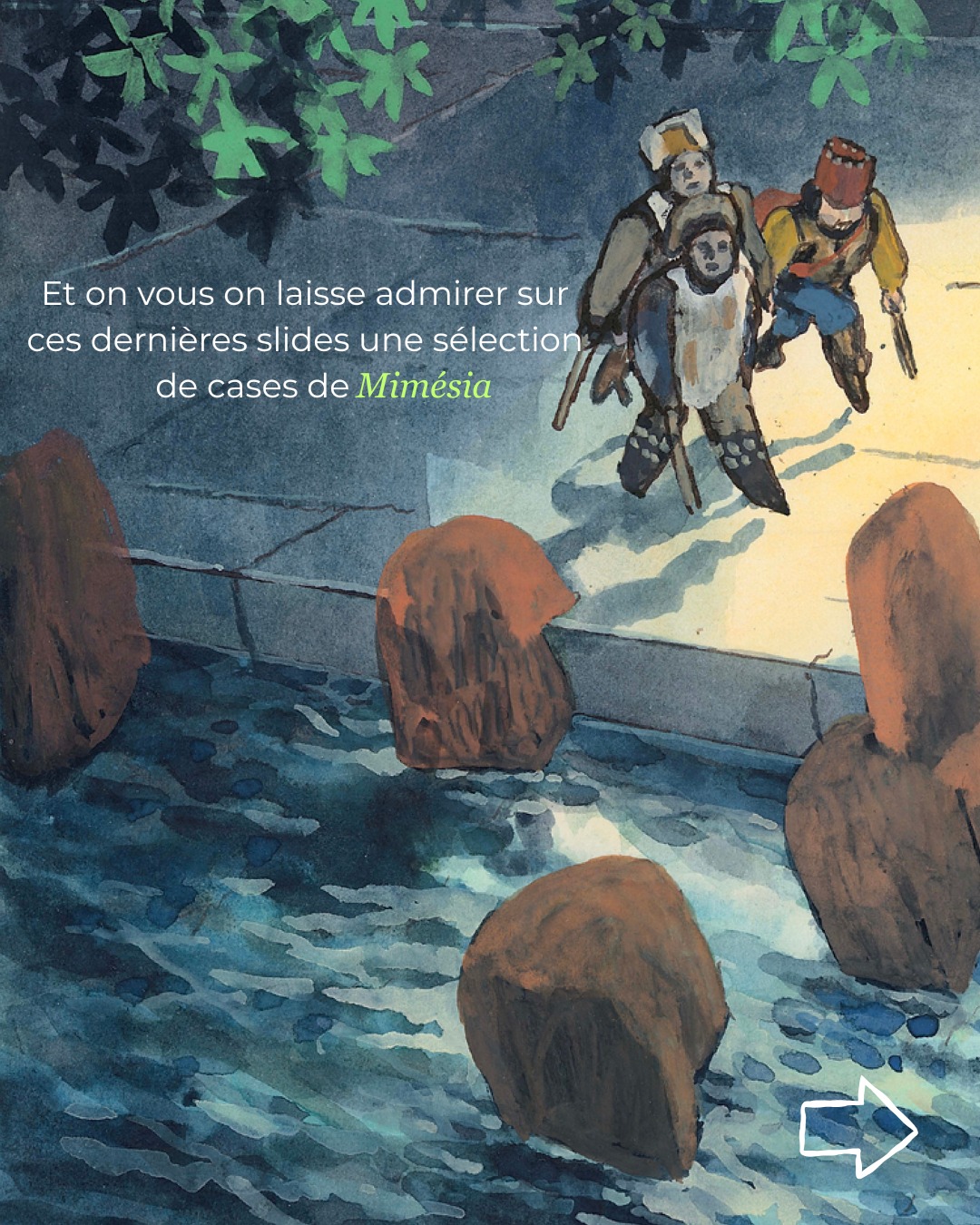 Ici, les illustrations faites principalement à la gouache sont de @huguesmicol et ces quelques cases sont issues de son dernier livre, Mimésia