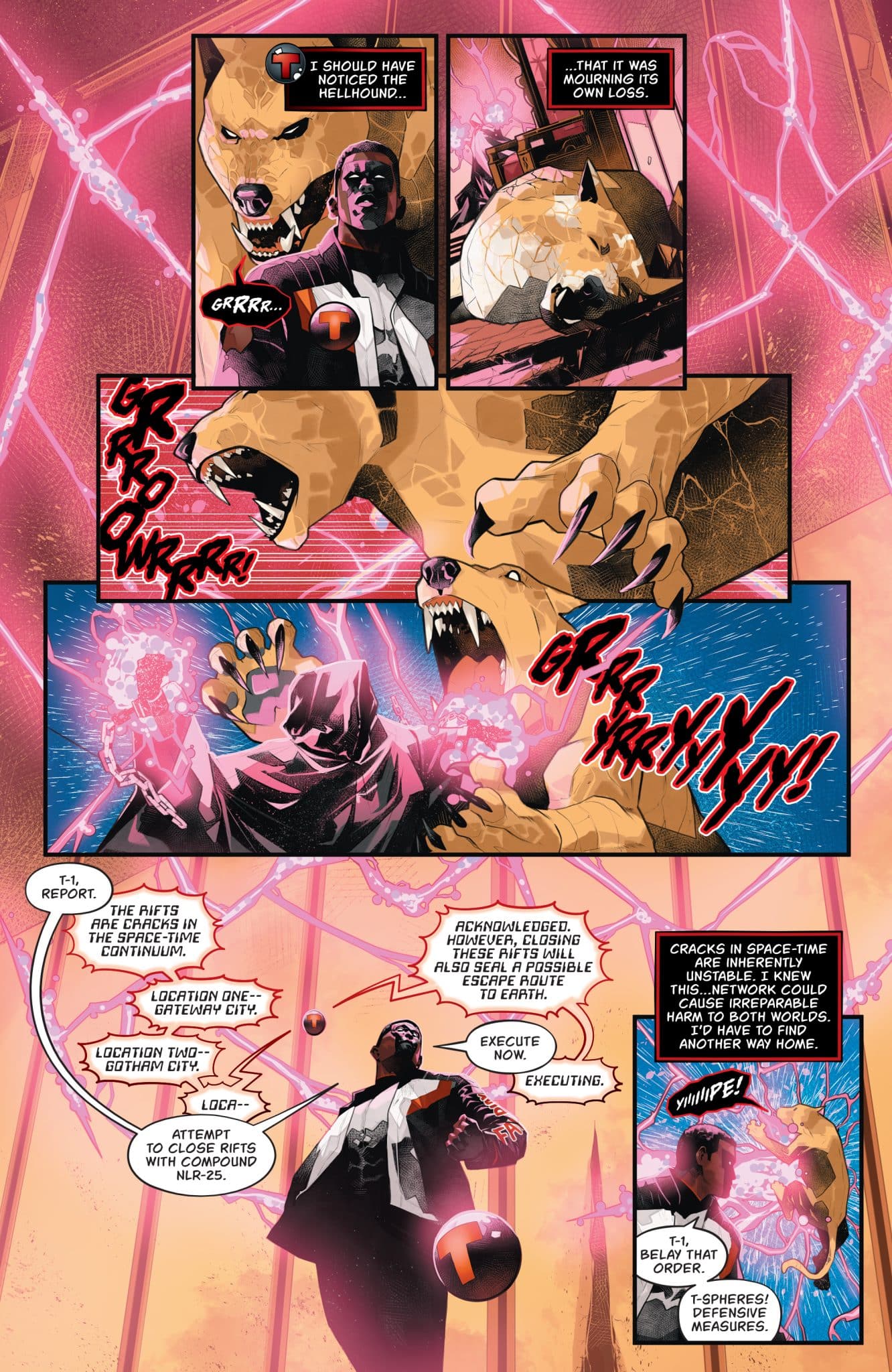 SRP: $3.99THE DEFINITIVE ORIGIN STORY CONTINUES! Propelled by a new sense of purpose and a clear target for his vengeance, Mr. Terrific dons his superhero costume (or the closest approximation he can scrape together from his workshop) for the very first time to lay siege to Athena Prescott’s tower at the center of Gateway City. But while he’s got his sights set on Prescott…she’s got her eyes on him too. And the third-smartest man in the world might just find that you can’t bring T-Spheres to a gunfight and expect to walk out alive… Meanwhile, in the present day, Mr. Terrific’s surprise encounter with an Apokoliptian hellhound lands him in some dimension-hopping hot water!