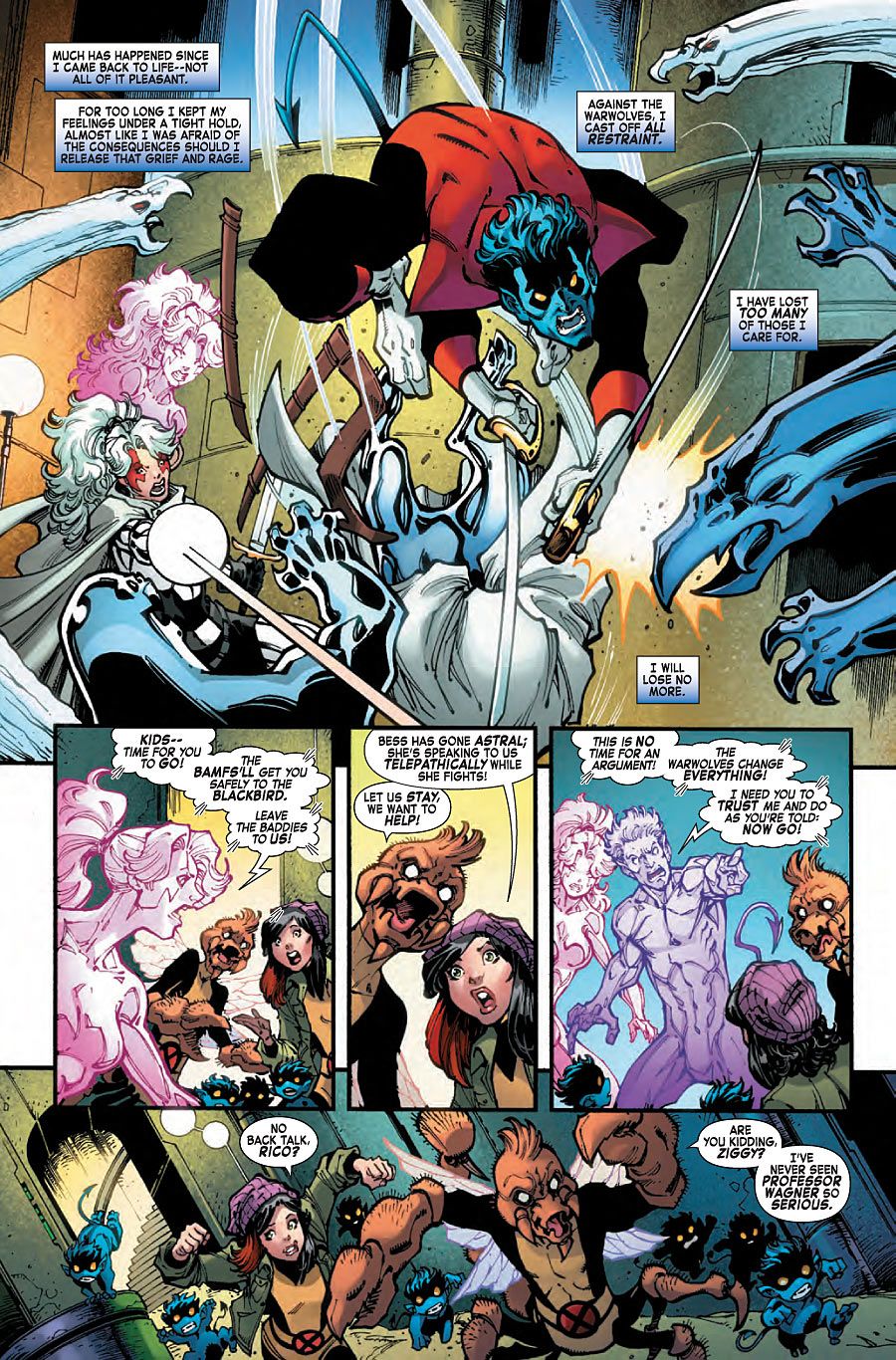 Kurt finit par demander l’aide des X-Men, mais bien entendu, malgré les avertissements (formulés notamment par Storm, ce qui renvoie à des péripéties passées remontant à la période claremontienne et maintient une cohérence dans la caractérisation), il tombe dans le piège de sa mère adoptive, qui a des idées derrière la tête.