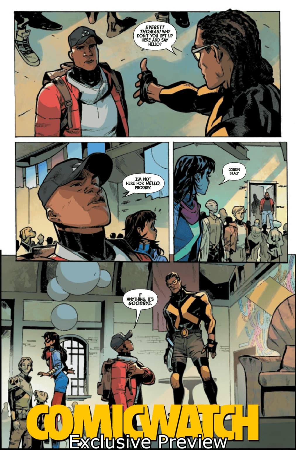 Très bon épisode. Collin Kelly & Jackson Lanzing concentrent leur numéro sur le point de Prodigy, via des notes de cours pour évoquer ses sentiments sur les oppositions binaires de la communauté mutante (s’intégrer ou dominer, Xavier ou Magneto, accepter ou attaquer, etc.), tandis que Kamala lui présente son hypothèse. Elle pense que The Krakoan est bien Hellion, et qu’il la provoque en faisant des attaques qui forment un X. Elle identifie le lieu de la prochaine agression, mais David ne veut pas l’aider. Elle y va avec Sophie mais lui dit qu’elle sait que Sophie est liée à tout ça, et celle-ci hésite à rejoindre Kamala qui l’identifie comme une vraie amie ; mais les autres Cuckoos la recadrent. The Krakoan attaque et maltraite Kamala brutalement, devant la télévision, et c’est le plan : anéantir Ms. Marvel pour imposer la peur aux Humains, qui abandonneraient Manhattan aux Mutants d’Empath. Mais Prodigy vient aider Kamala, et tabasse Julian avec ses connaissances et son expérience. La police arrête Julian et interroge Prodigy, alors que Ms. Marvel s’enfuie et que Sophie ne sait désormais plus quoi faire.