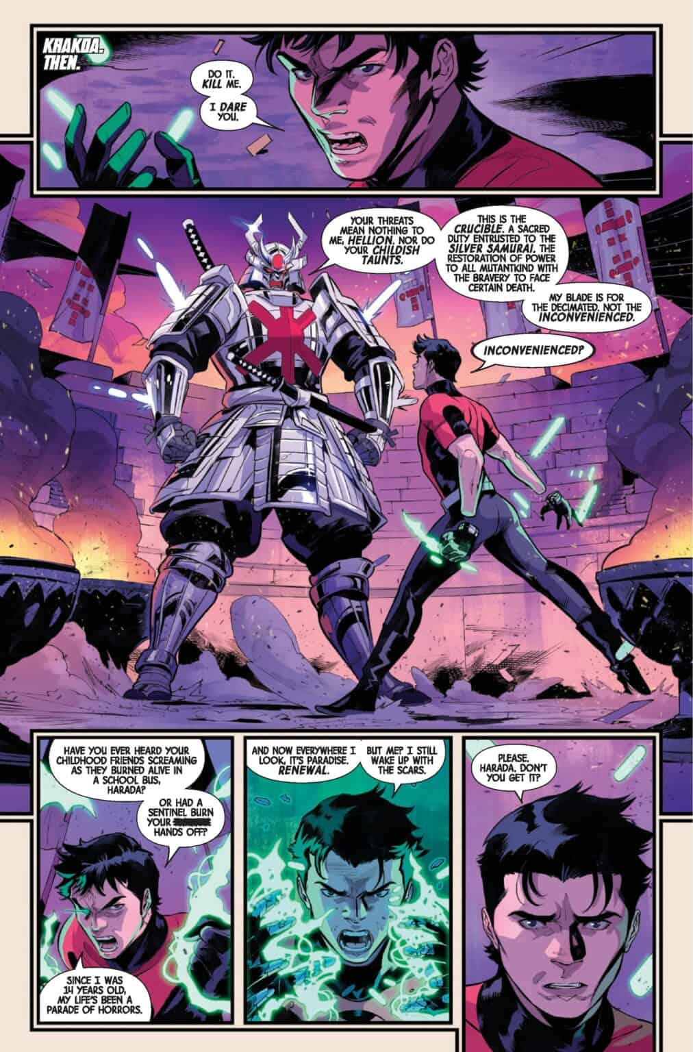 Powerful. Troubled. Intense. He was HELLION and she was X-23 - two kids, more similar than different, battling a cruel world. Now Julian Keller’s calling himself THE KRAKOAN, the proud new face of mutant terrorism. Laura Kinney is WOLVERINE, stalking silently from the shadows trying to keep mutants safe. They’re about to come face-to-face: with each other, with the past and with what they’ve become. And one thing is for sure: They’re not kids anymore.