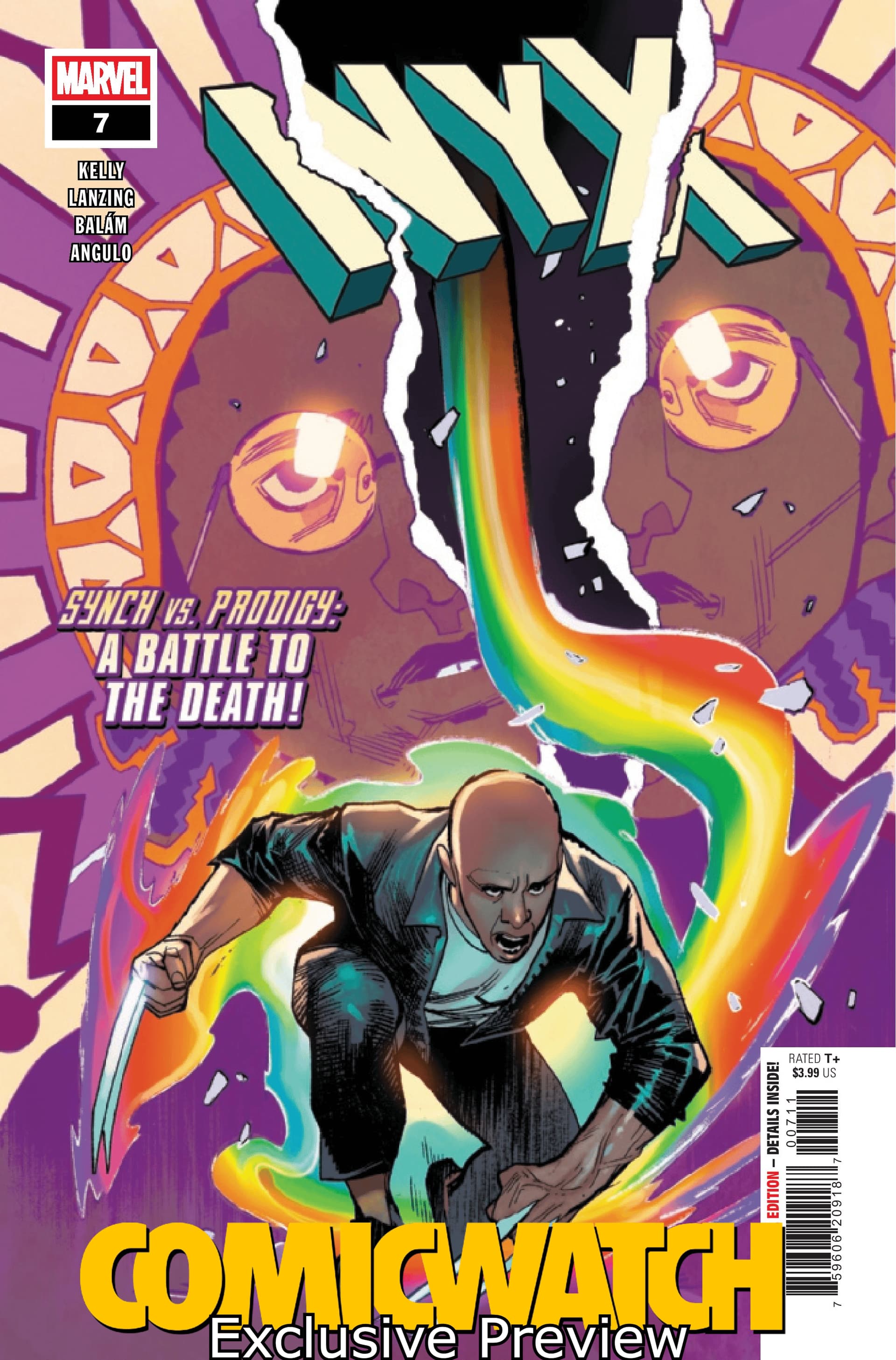 Synch challenges Prodigy to the CIRCLE PERILOUS in NYX#7 on shelves & digital platforms on January 8, 2025, from Marvel Comics