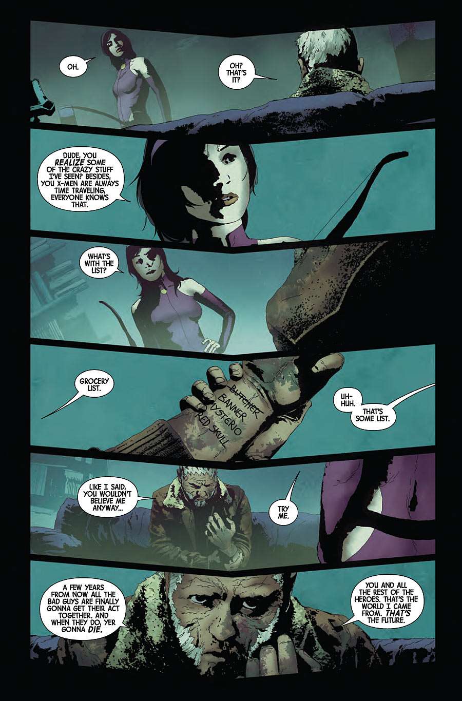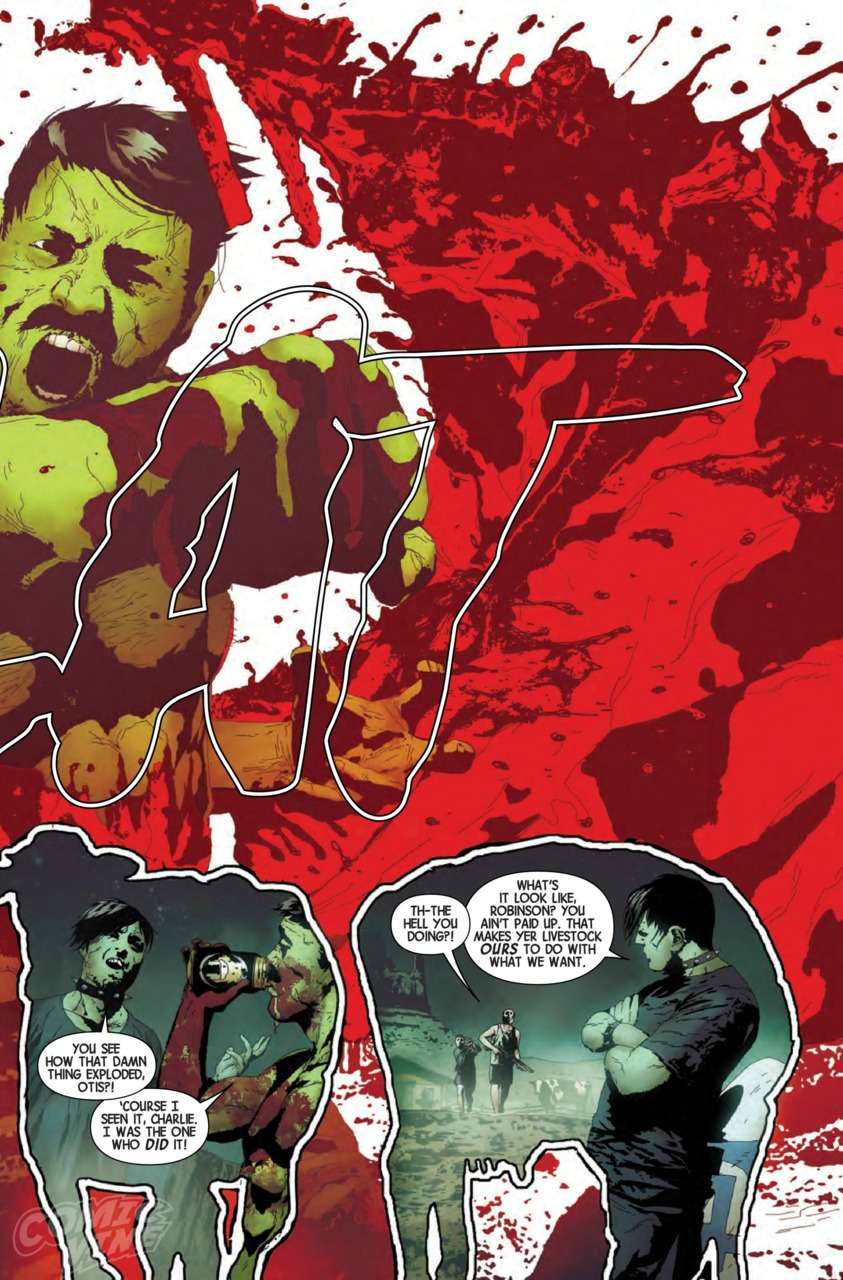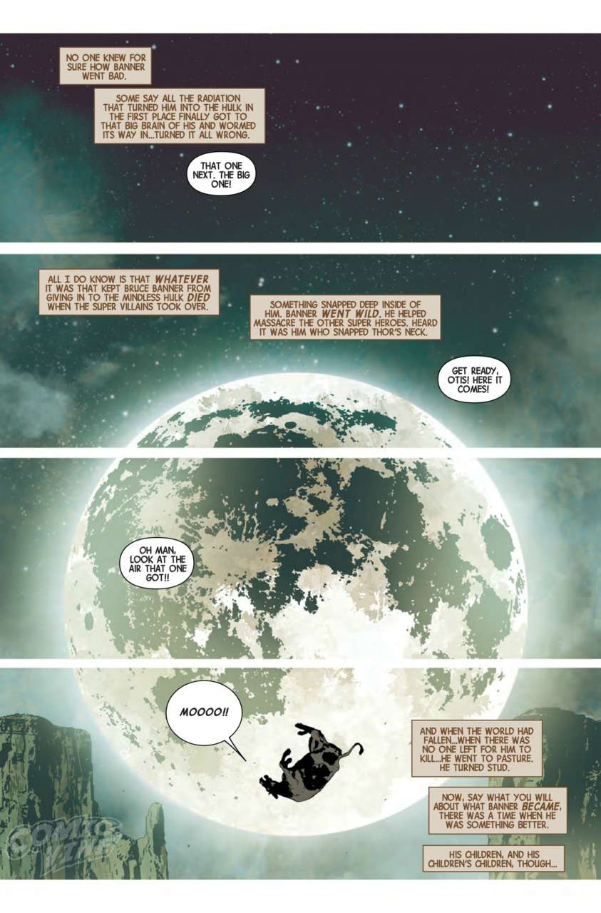• For Old Man Logan, home is a wasteland in the distant future, one overridden by hillbilly Hulks who extort and torture civilians for fun.