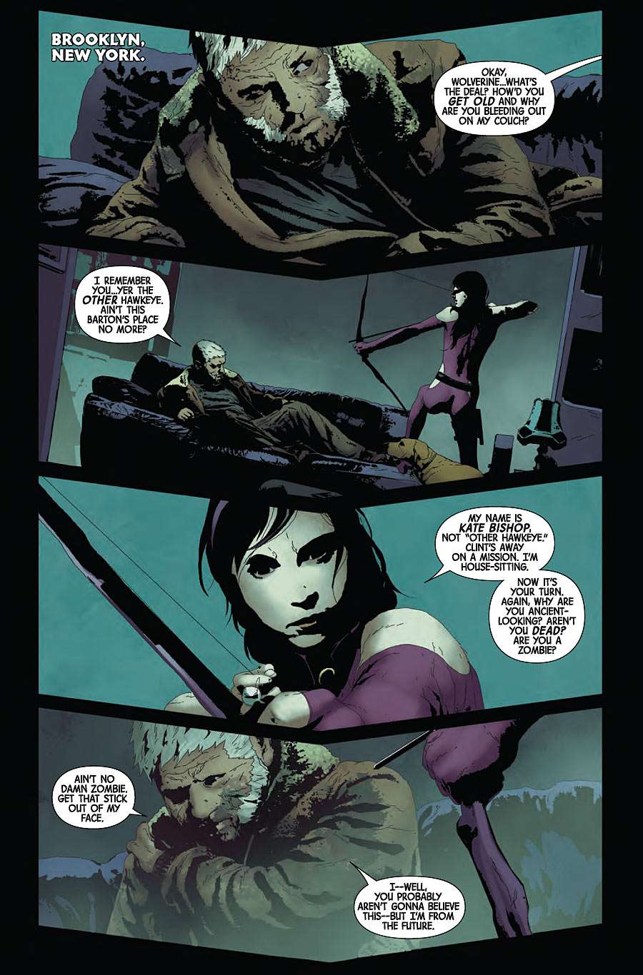 Knowing Andrea was involved with Old Man Logan is what attracted me to the project initially. I wanted to work with Andrea again from the minute we finished our last Green Arrow issue. But there was a little gap, as I was still with DC when he moved to Marvel. Then a young upstart writer named Brian Michael Bendis got a hold of Andrea, delaying our reunion even more. But finally things lined up. It was a not matter of “if” but “when” we would work together again.