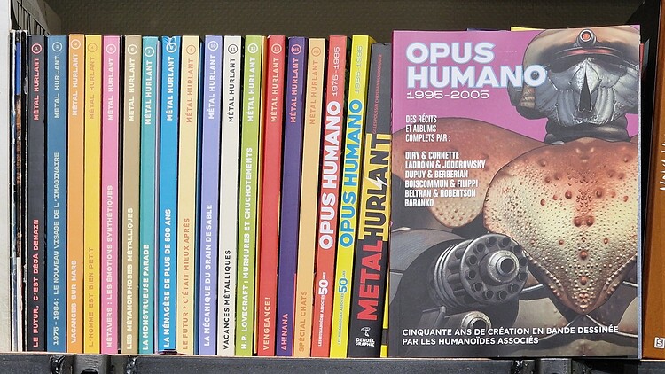 D’une facture similaire au mook METAL HURLANT qui paraît depuis 2021, OPUS HUMANO, série anniversaire à un prix abordable (19,95 € le numéro) et dont la publication bimestrielle s’étalera de septembre 2024 à mai 2025, ne proposera pas de contenu déjà publié dans la nouvelle série METAL HURLANT ; ces publications sont donc complémentaires.