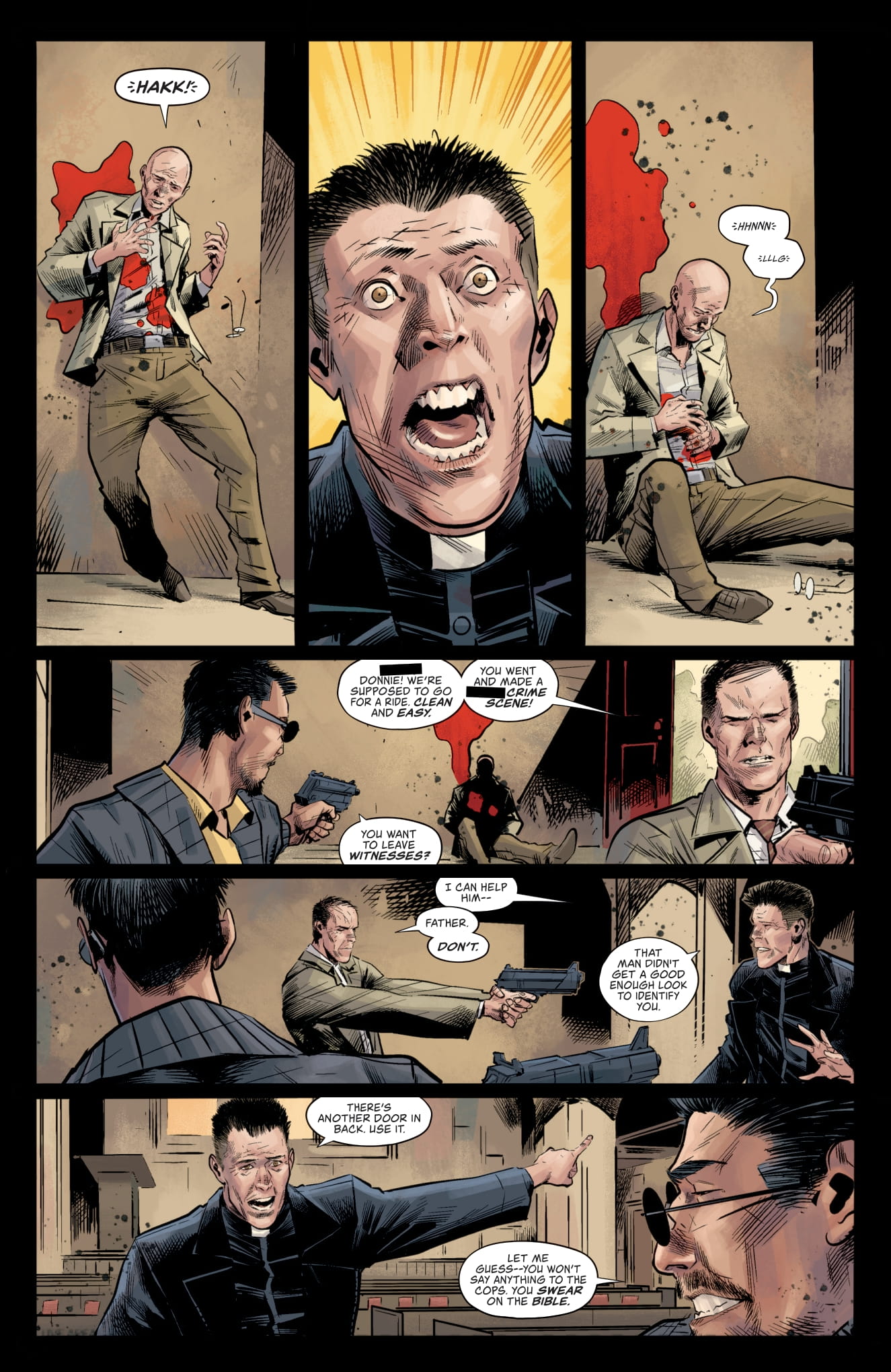 …until the next morning. When Byrne makes a miraculous medical recovery. No longer at death’s door, Byrne is quick to return to his old ways. It’s business as usual and he’s got loose ends to tie up. First things first: KILL THE PRIEST who now knows where all the bodies are buried.