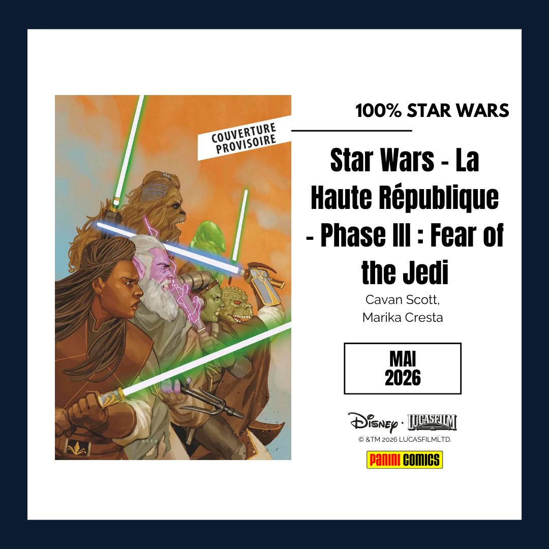 Une Fin : avec LA PEUR DES JEDI dernier tome de la série Marvel de LA HAUTE RÉPUBLIQUE mais aussi dernier comics de l’ère et plus généralement conclusion de la Phase III et de toute la saga. Un immanquable donc.
