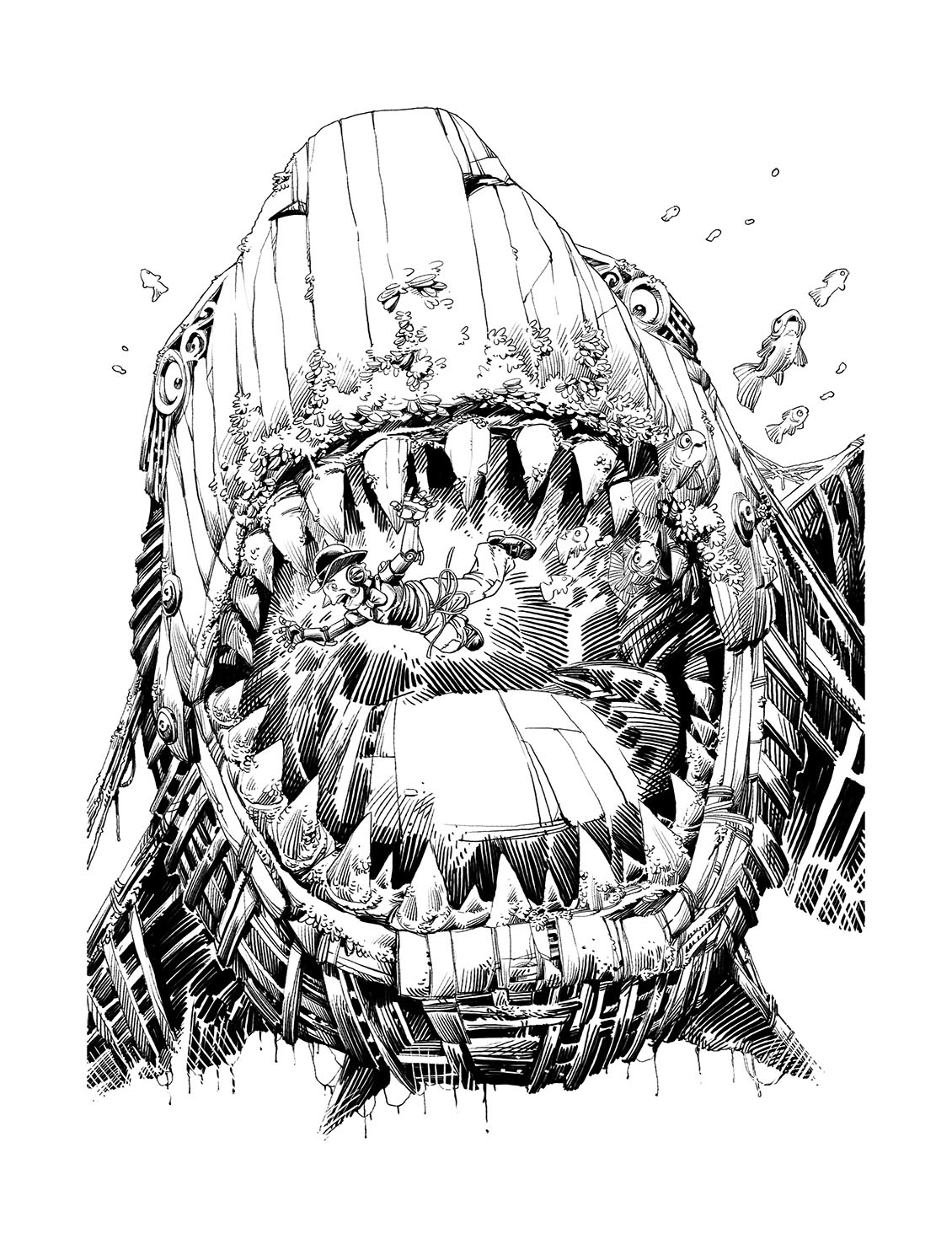 Oui c’est un excellent livre que j’ai beaucoup aimé. Je ne l’ai pas relu afin de ne pas être perturbé dans ma création. Ceci dit, de mémoire, c’est un album qu’on ne peut pas classer dans les « adaptations » à proprement parler. Pinocchio pour lui était un prétexte, une base pour raconter autre chose. Il est complétement sorti du propos de Collodi. C’est pourquoi je pense plutôt au Peter Pan de Loisel nous concernant, parce que notre Pinocchio est une relecture en profondeur du récit original, c’est un point de vue également, mais vraiment centré sur le livre de Collodi. Je pense qu’on y dit ce que l’auteur n’osait pas aborder, mais qui est pourtant induit dans son propos.