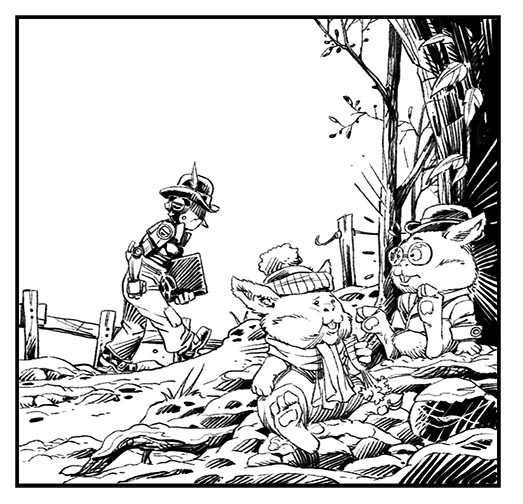 Je travaille avec Jean-Luc sur le découpage narratif, je réalise le dessin final à partir de tout ce travail afin d’assurer une homogénéité graphique.
