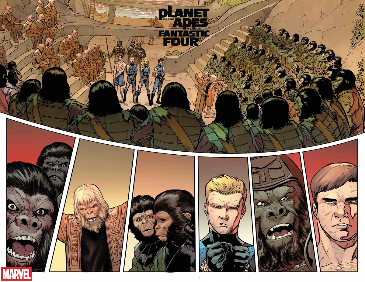 Marvel Comics launches its latest 20th Century Studios crossover this coming week with the release of Planet of the Apes vs. Fantastic Four #1; get yourself a sneak peek at the issue below with the official preview…