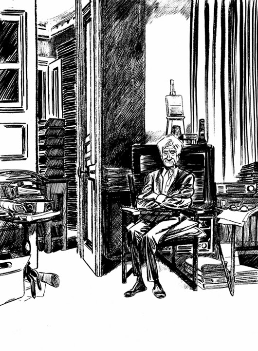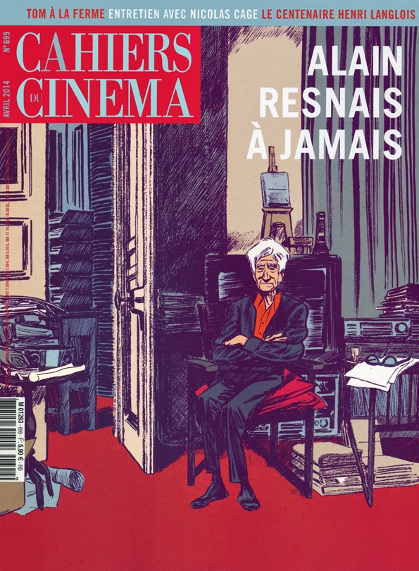 Dessin de Blutch mis en couleur par Isabelle Merlet pour la couverture des Cahiers du cinéma d’avril 2014.
