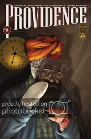 … **[size=150]J[/size]**e suis en train de lire le second tome de Providence (seulement le premier numéro du volume pour l’instant) et je m’aperçois que même après des années de scénarios, ponctuées de pièces d’anthologies, voire de chefs d’œuvres [dans le sens artisanal du terme si je puis dire], Moore est toujours magistral et propose encore de l’inédit au niveau du storytelling.