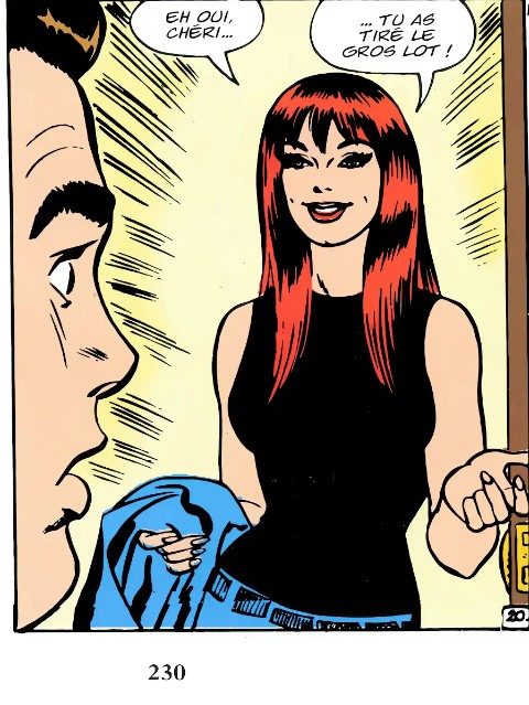 Moi, j’ai les quatre numéros de Spider-Man l’âge d’or. Dans le premier, il y a la première apparition de Mary Jane. Et sa célèbre phrase est traduite en :