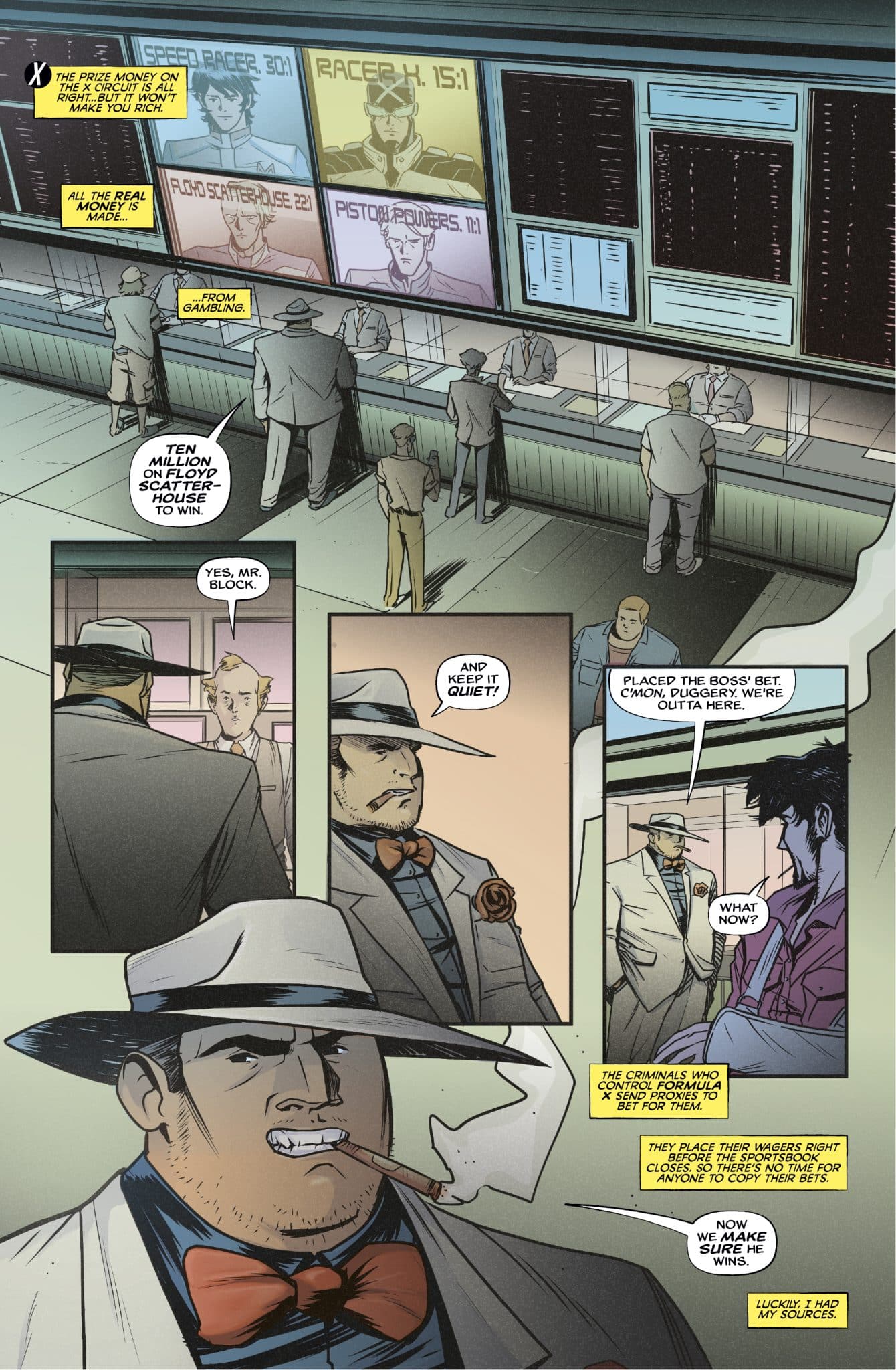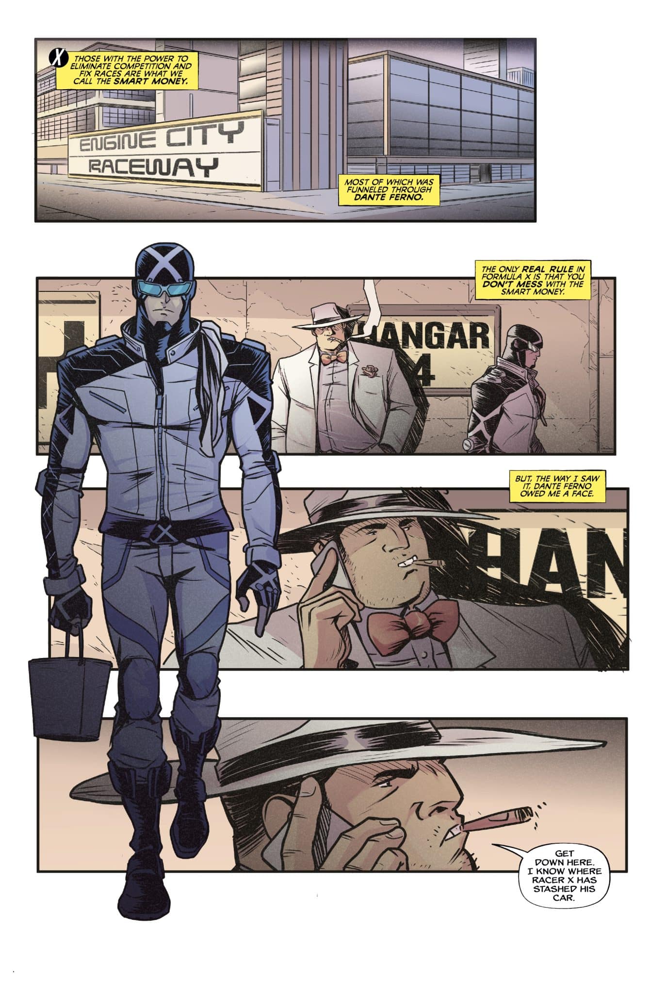 “I’ve loved the Speed Racer cartoons since I was a kid. But as an adult, I feel like Racer X is the character who speaks to me the most,” said writer Mark Russell in a press release. “So while I’m thrilled to be working in a universe I’ve loved for so long, getting to write a character with the mystique and gravity of Racer X makes it a truly unique opportunity. I hope readers not only enjoy the new direction in which I’m taking Racer X, but sense the love and respect I have for the character as well.”