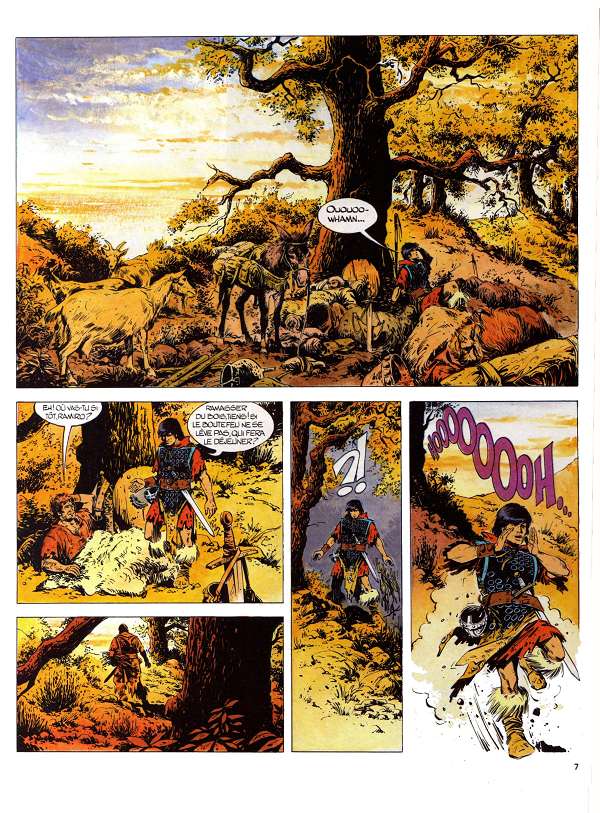 Le tome suivant, « Qui es-tu, Wisigoth ?… », permet de donner une conclusion à cette course-poursuite un peu lassante. On peut comprendre que Vance cherche à mener des expériences visuelles et graphiques, à se faire plaisir avec les décors, à rendre hommage à son Espagne d’adoption, voire à profiter d’une décompression narrative qui lui donne les coudées franches, mais tout de même, trois tomes pour que les personnages récupèrent le trésor et se débarrassent à la fois de leurs poursuivants mahométans et des coupes-jarrets auxquels ils ont déjà échappé, c’est un peu beaucoup.