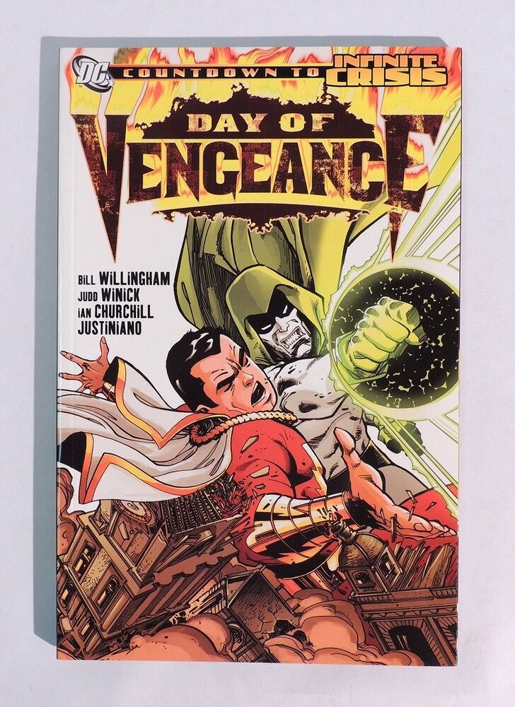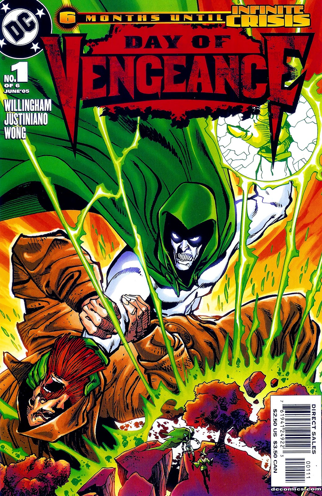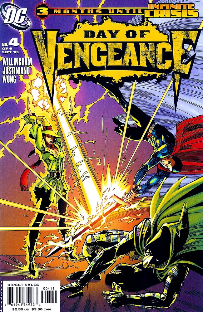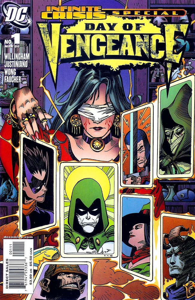Day of Vengeance commence quand Jean Loring, possédée par Eclipso, s’échappe. Au même moment, le Spectre, privée de son ancre humaine, dérape et se met à sanctionner des pécheurs de tous ordres, mais souvent auteur de péchés véniels. C’est sous l’influence (séduisante, reconnaissons-le) d’Eclipso que le Spectre s’en prendra à la magie du monde. Dans le même temps, des héros magiques ayant survécu au massacre se rassemblent de manière informelle afin de trouver une parade. Bill Willingham, assisté des dessinateurs Justiniano et Ron Wagner, remet sur le devant de la scène Detective Chimp (j’ai bien l’impression que c’est à l’occasion de cette mini que ce vieux personnage revient : il s’est imposé depuis, puisqu’on le revoit notamment dans Justice League Dark), qu’il entoure d’Enchanteress, Ragman et quelques autres seconds couteaux mystiques.