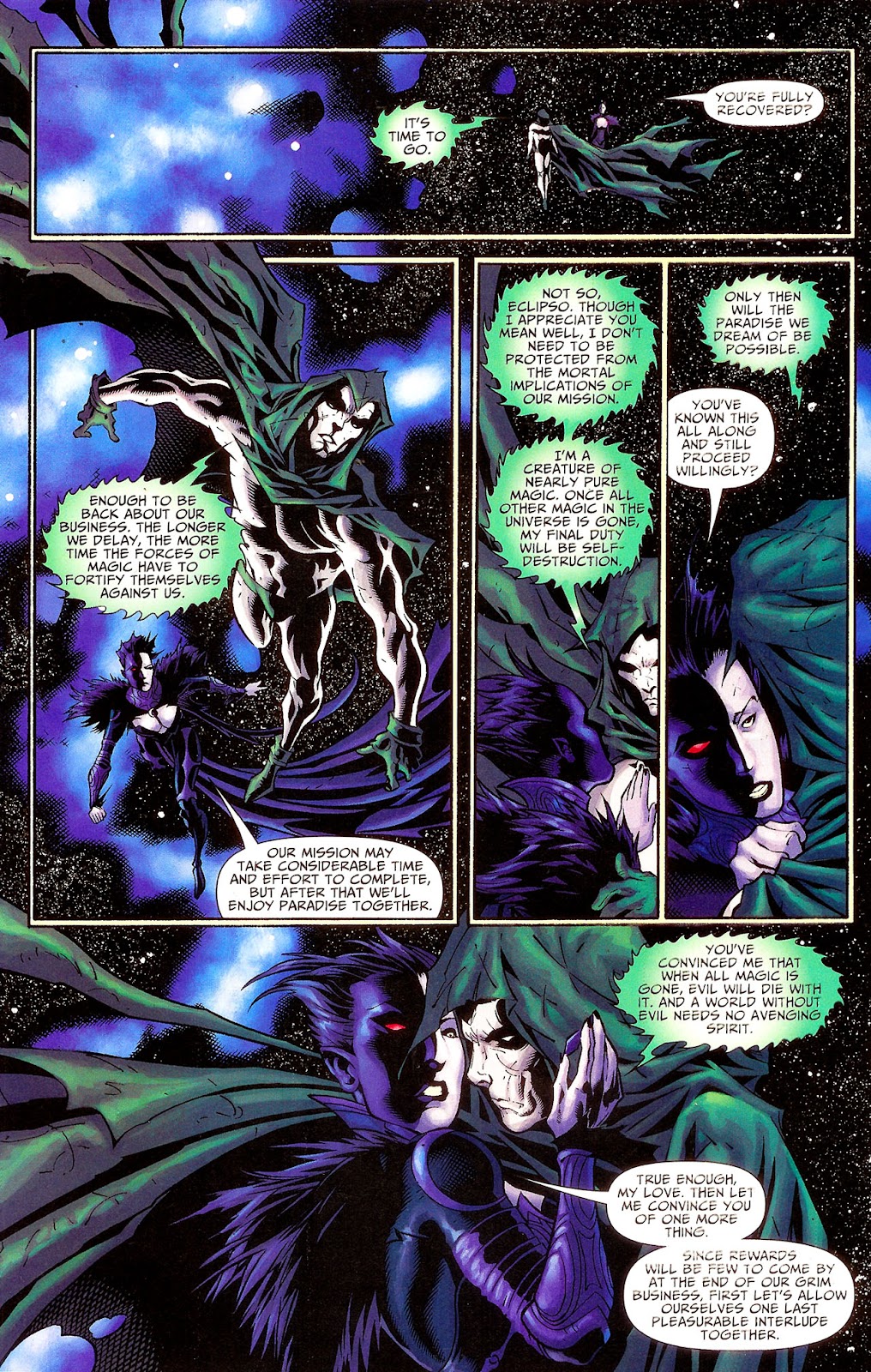 La mini-série revient sur des idées fortes : par exemple, qu’Eclipso est la première incarnation de la vengeance, dévoyée puis remplacée par le Spectre, ce qui fait d’eux deux forces sœurs, voisines, complémentaires, égales en puissance. Si je ne me trompe pas, il me semble que c’est dans la série Spectre d’Ostrander que cette origine commune est énoncée pour la première fois (à vérifier, cela dit).