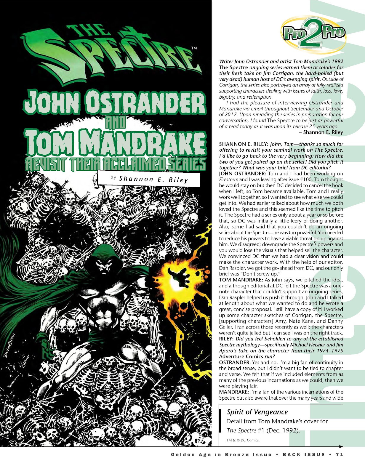 Spectre : 62 numéros (Ostrander ayant été prévenu un an à l’avance de l’arrêt du titre, il n’est donc pas pris de court, tout en ayant déjà une idée précise de la conclusion dès la 1ère année du run).
